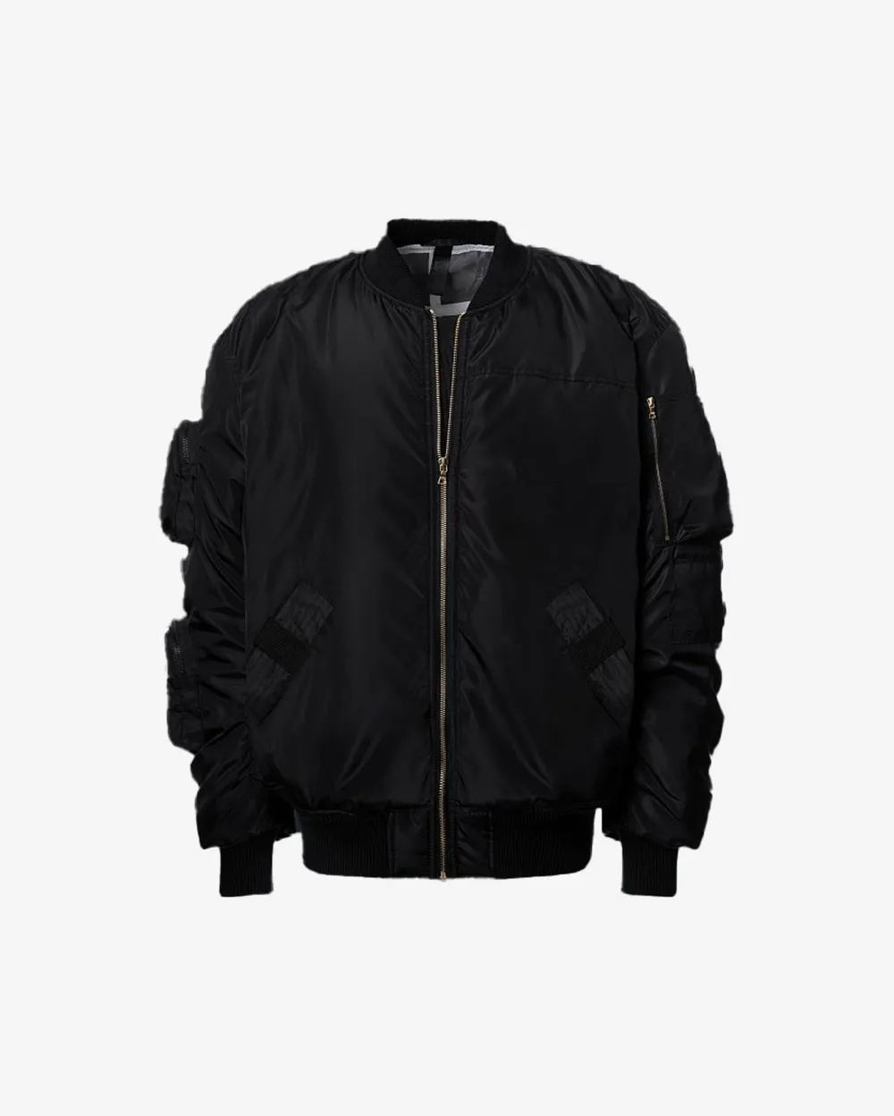 Металлические молнии Riri золотистого цвета. Два накладных кармана с матовыми молниями на правом рукаве. Мягкие вязанный манжеты - изготавливаются под заказ именно для этой модели.Вышитый по особой