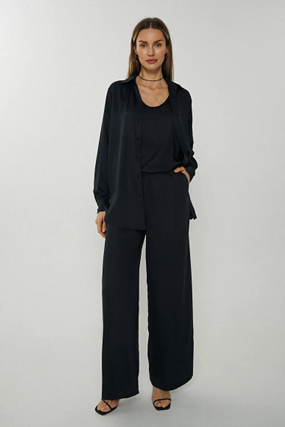 Комфортные свободные брюки с чуть заниженной посадкой, выполненные легкой ткани Бамбук и дополненные аккуратными защипами на талии. Для создания комплекта сочетайте их с топом и блузкой из нашей коллекции.