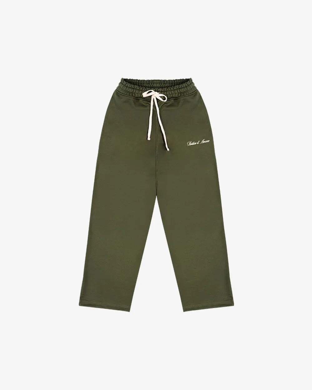 Плотные базовые оверсайз брюки оливкового цвета с фирменной вышивкой у кармана. Плотность 480 грамм.