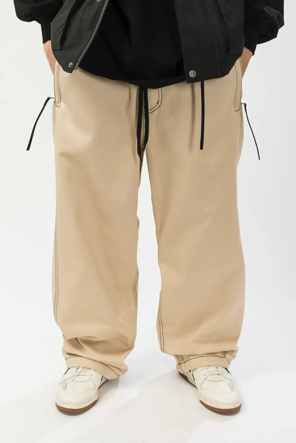 Мужские штаны. Широкий покрой изделия. Два боковых и два больших задних кармана. Регулировка нижней части брючин на эластичном шнуре с фиксатором.
