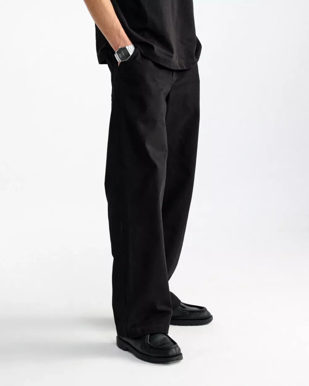 диагонального твила 310 гр. / м плотностью.В поясе есть резинка, слегка стягивает пояс, чтобы в некоторых случаях брюки можно было носить без ремня.