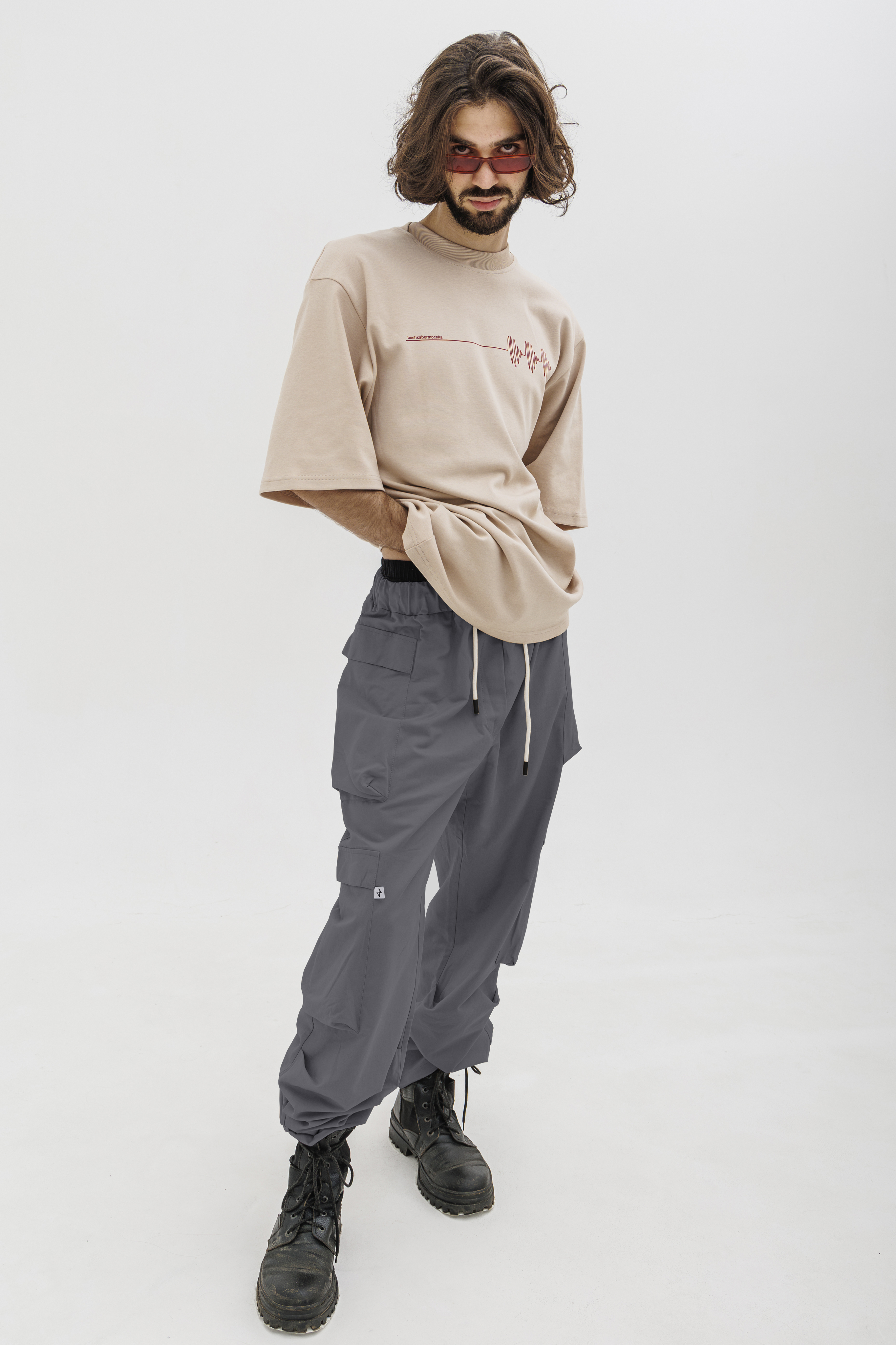 Легкие карго с четырьмя карманами по бокам. Пояс на плотной резинке и шнурке обеспечивает надежную и комфортную посадку. Также предусмотрены фиксаторы по низу штанин для дополнительной регулировки.