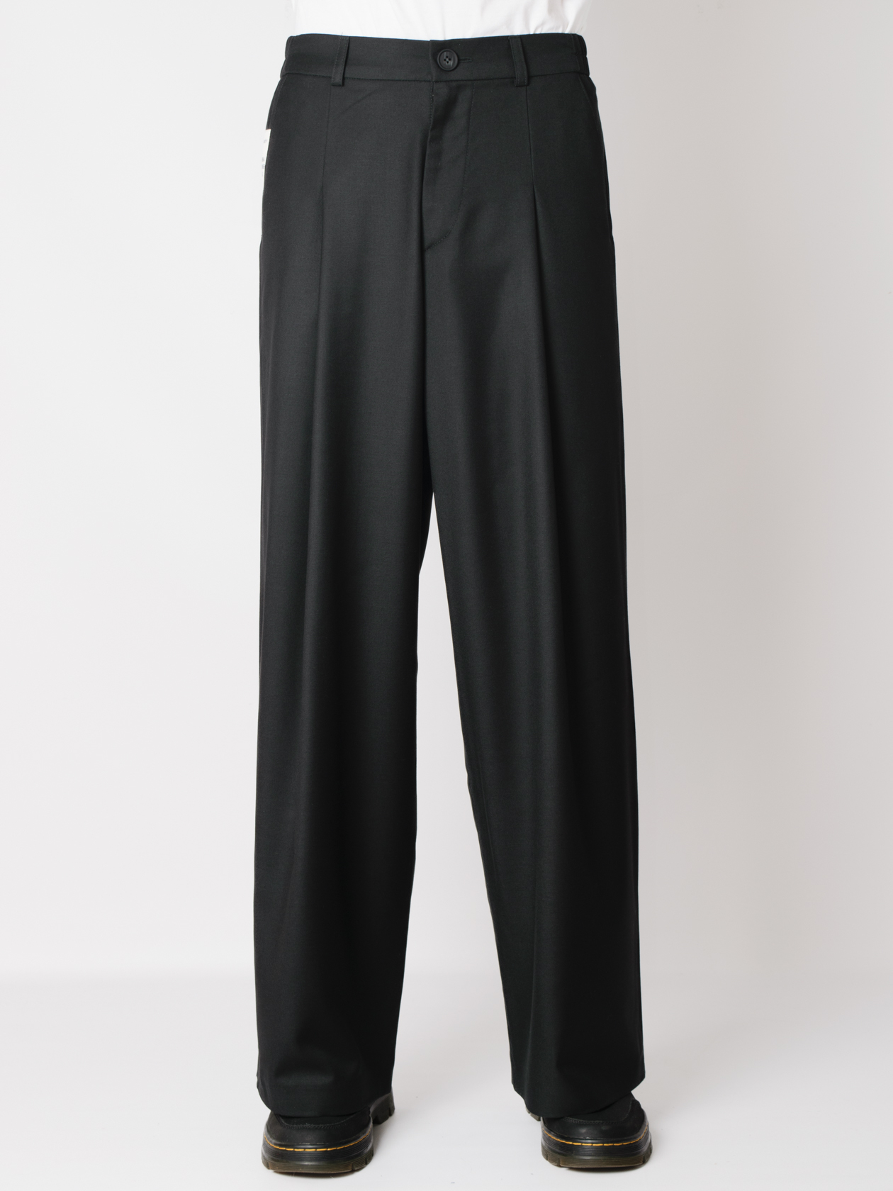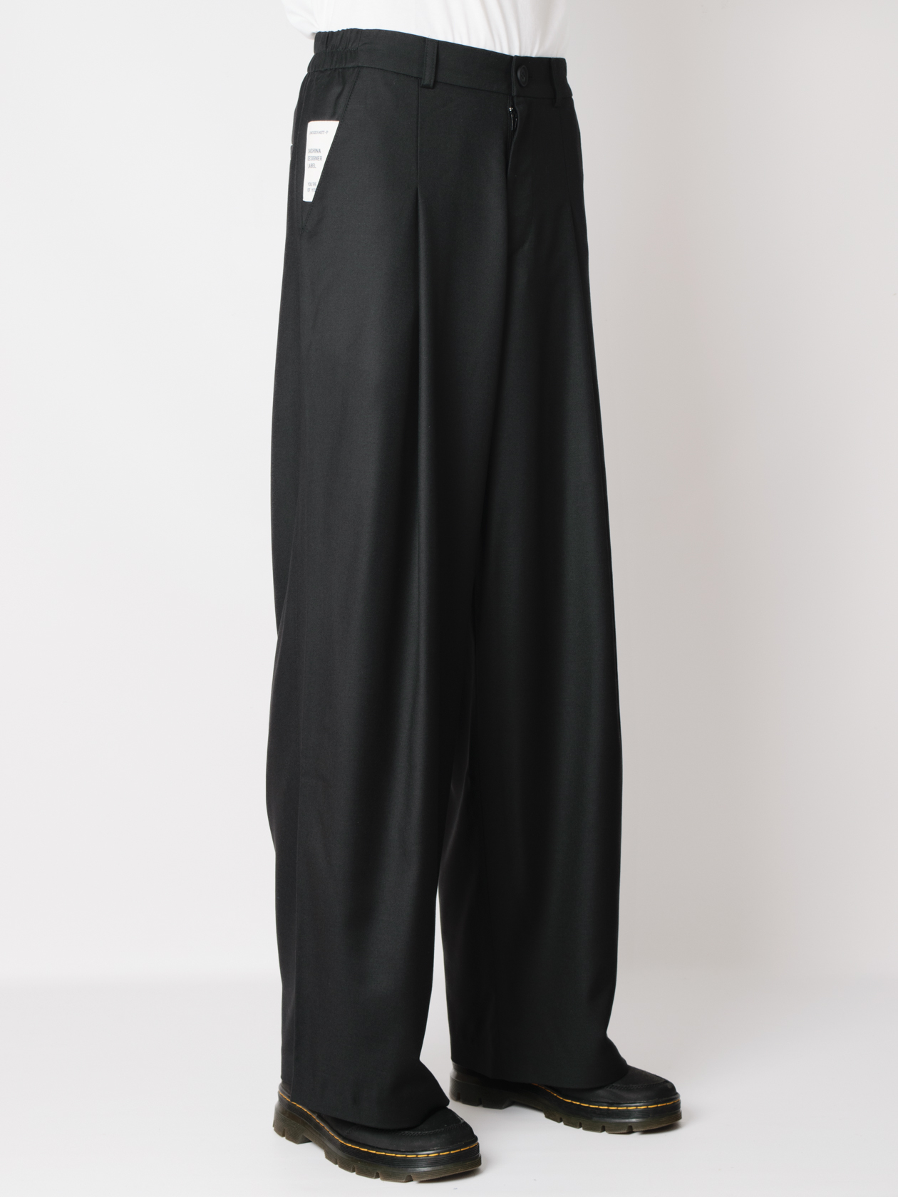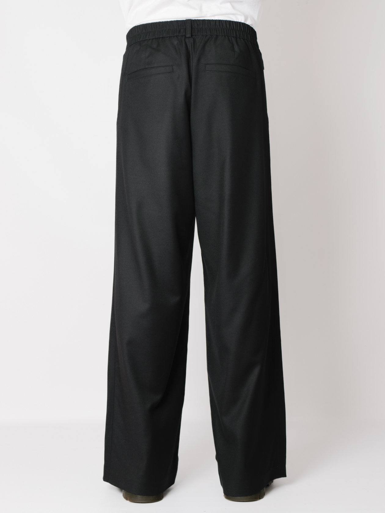 Широкие брюки из костюмной ткани с добавлением шерсти. Комбинированный пояс с резинкой внутри обеспечит идеальную посадку по талии и бёдрам.