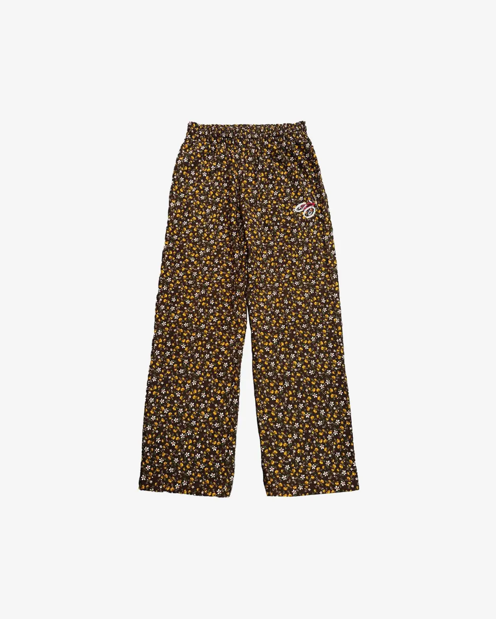 Прямые оверсайз брюки из принтованной вельветовой ткани с вышивкой и скрытой регулируемой резинкой внизу.