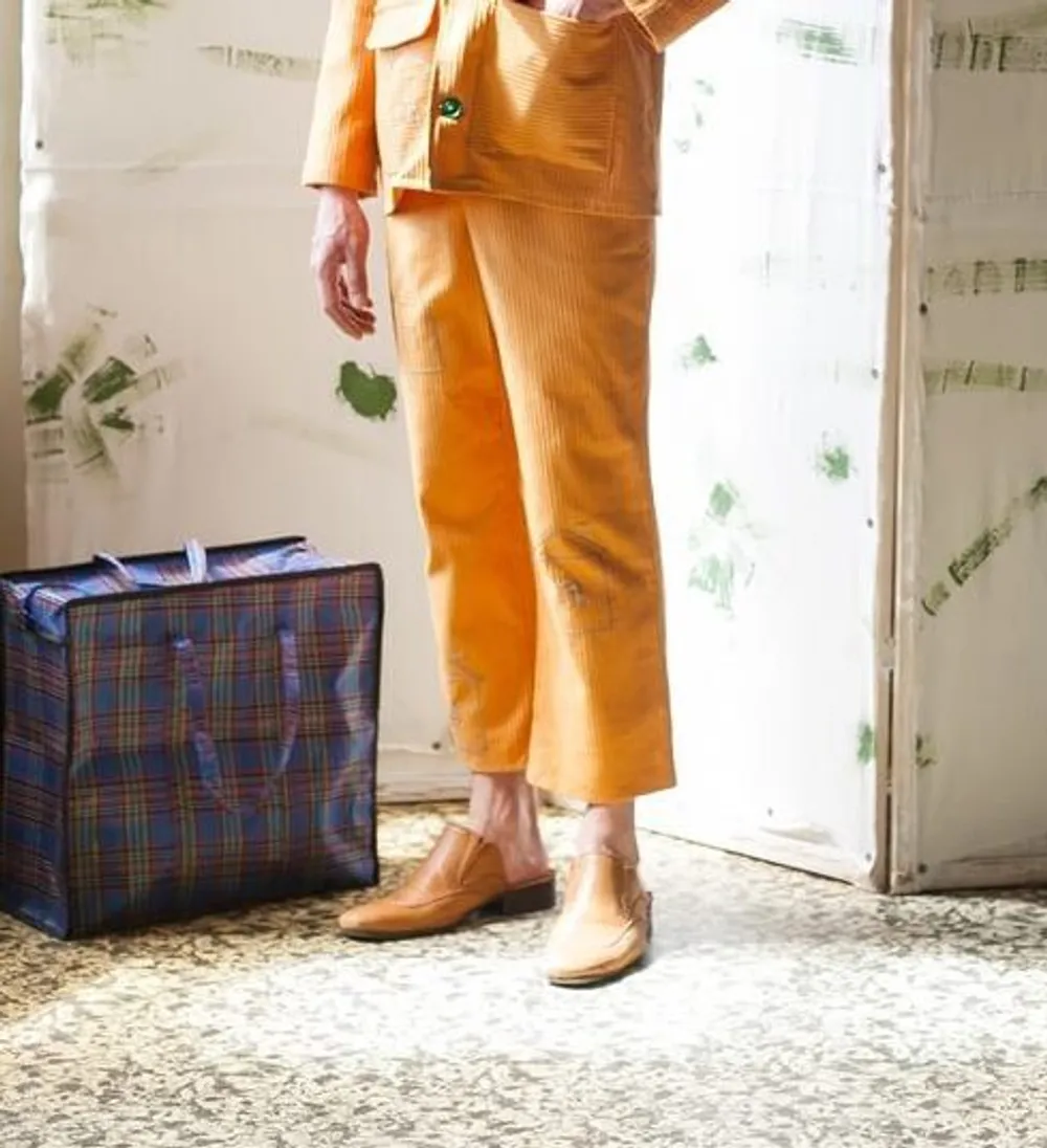 Брюки сделаны из винтажного вельвета. Костюм украшен вышивкой вручную.