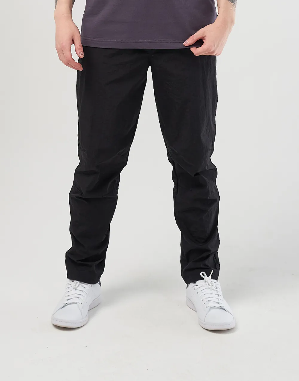 Штаны We Don’t Сare из легкого нейлона с эффектом мятой ткани. Карманы для рук застегиваются на молнию. В поясе используется прочная стропа и магнитная пряжка. Над задним левым карманом съемный патч на кнопках — отсылка к элементам военной униформы.