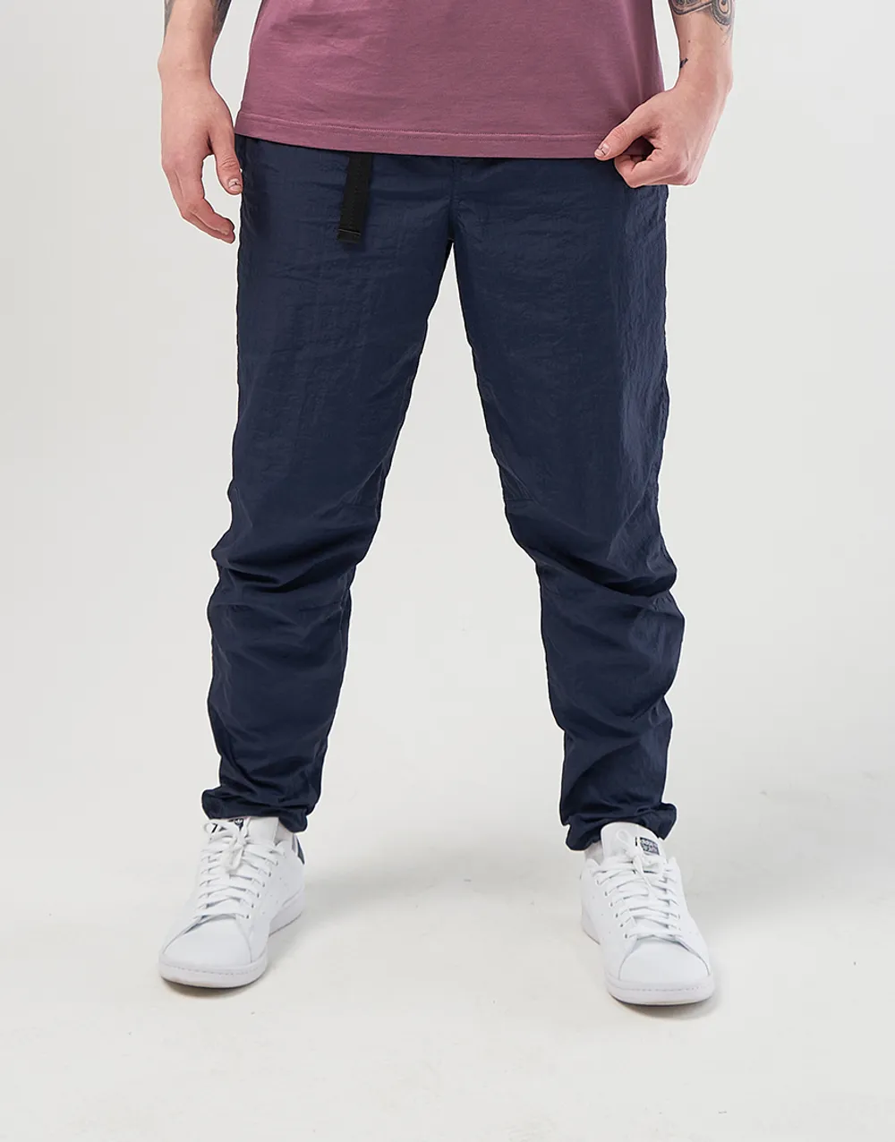 Штаны We Don’t Сare из легкого нейлона с эффектом мятой ткани. Карманы для рук застегиваются на молнию. В поясе используется прочная стропа и магнитная пряжка. Над задним левым карманом съемный патч на кнопках — отсылка к элементам военной униформы.