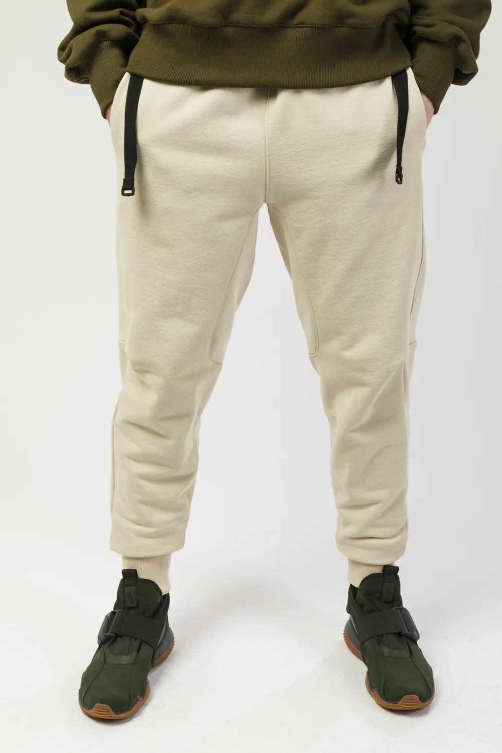 Мужские штаны из футера без начеса. Регулировка объема пояса на стропах. Специальный крой, обеспечивающий свободу движений.