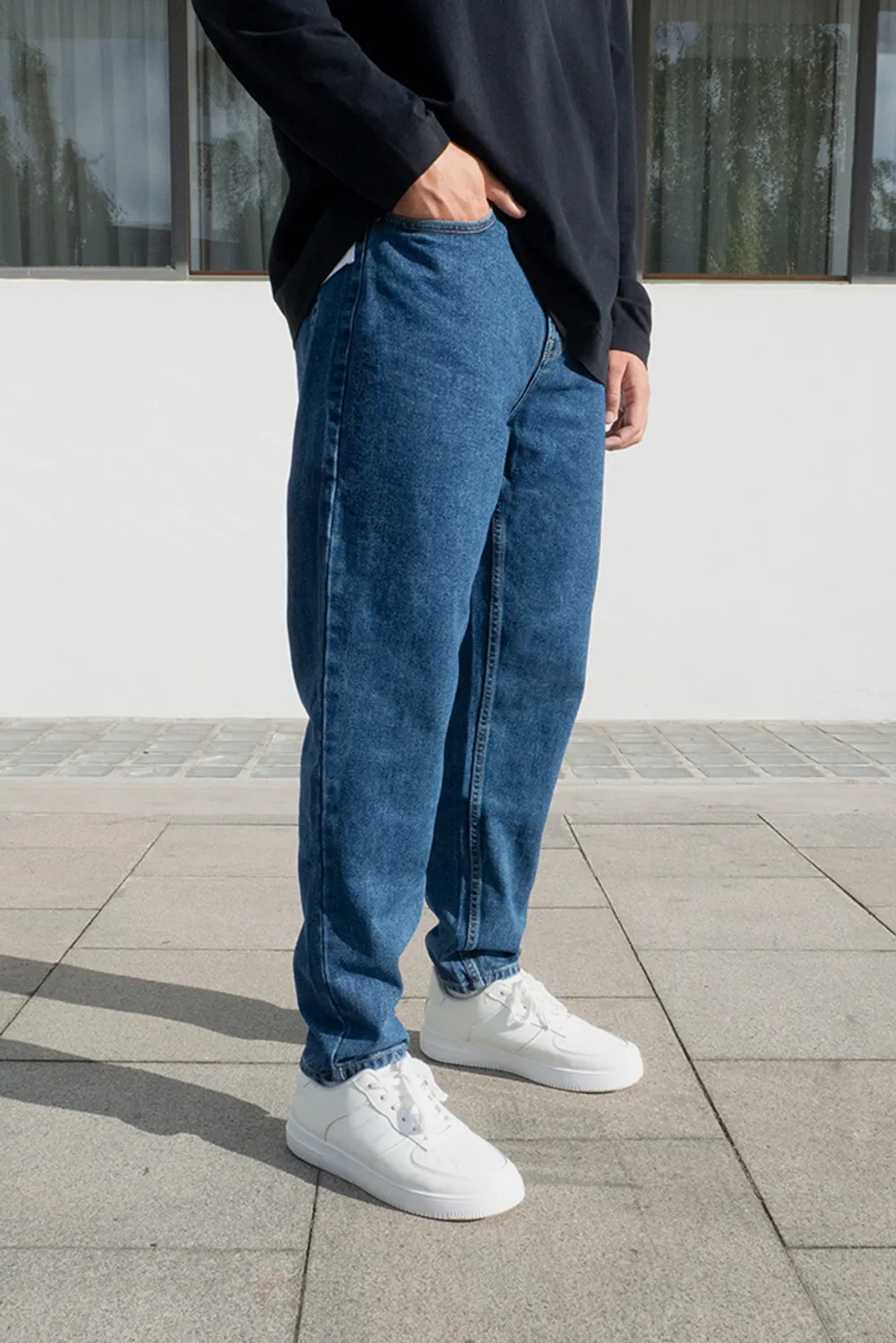 Расслабленные зауженные к низу джинсы. Имеют классическую посадку, 3 кармана спереди и 2 сзади. Застежка на молнию в гульфике и пуговицу на поясе. В джинсах предусмотрены шлевки для ремня. Это основа базового гардероба на любой сезон.