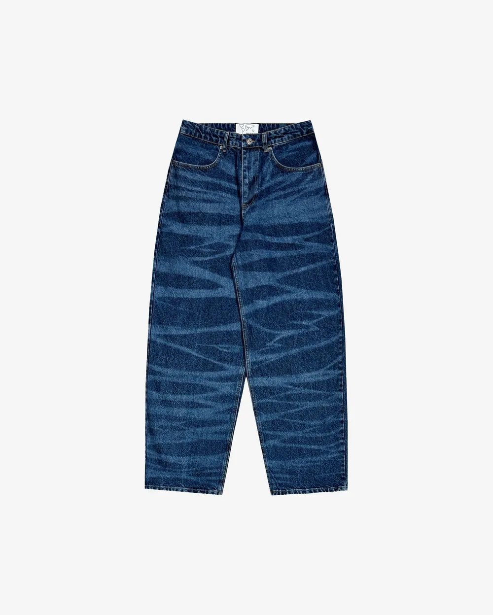 Джинсы оверсайз кроя, выполнены из heavyweight денима плотностью 14,5 oz. Каждая пара окрашена вручную и сварена по технологии stone washed.