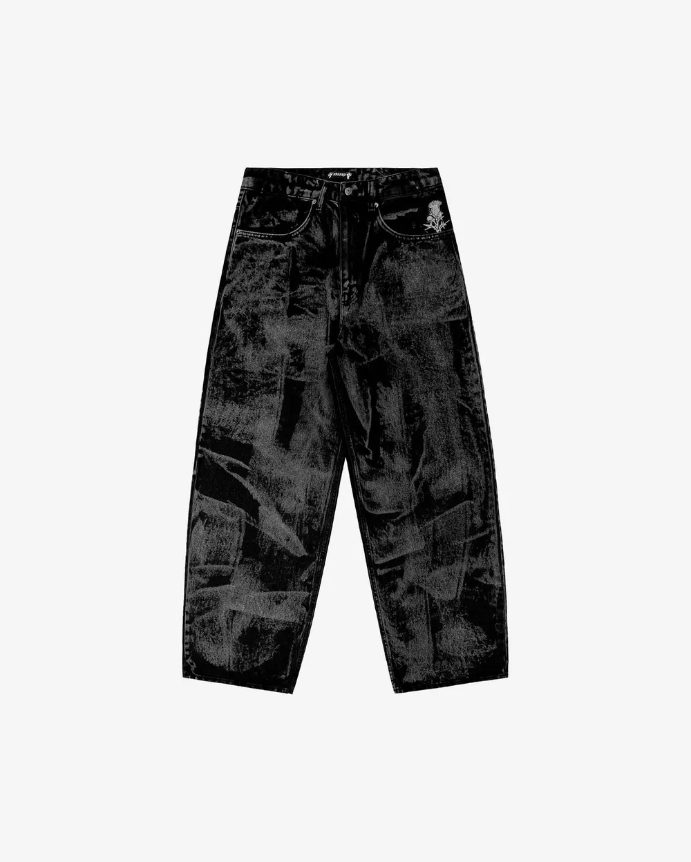 Джинсы оверсайз кроя, выполнены из heavyweight денима плотностью 13,5 oz. Каждая пара окрашена вручную и сварена по технологии stone washed – логотип выполнен в виде вышивки на кармане – характерная строчка на заднем кармане – ширинка на молнии YKK – модель средней длины