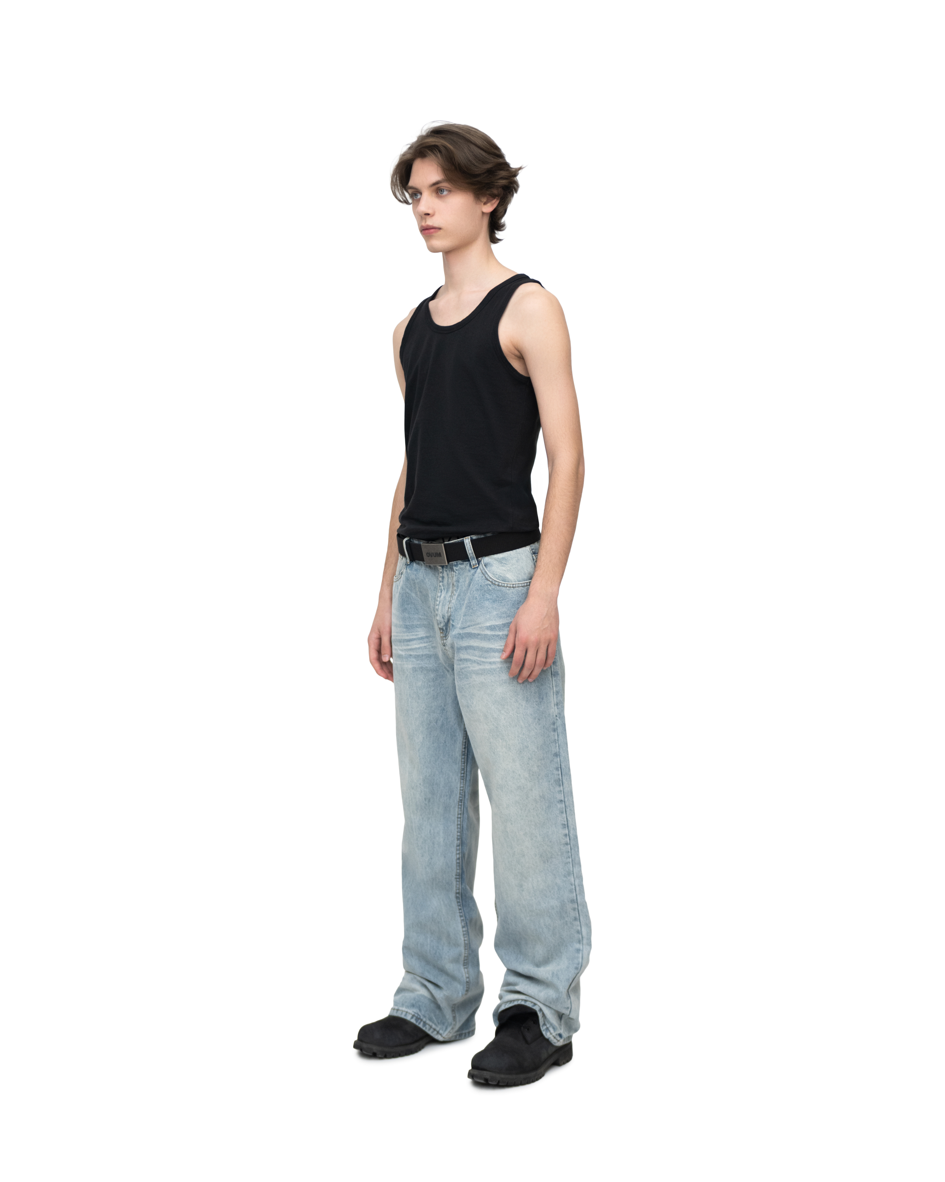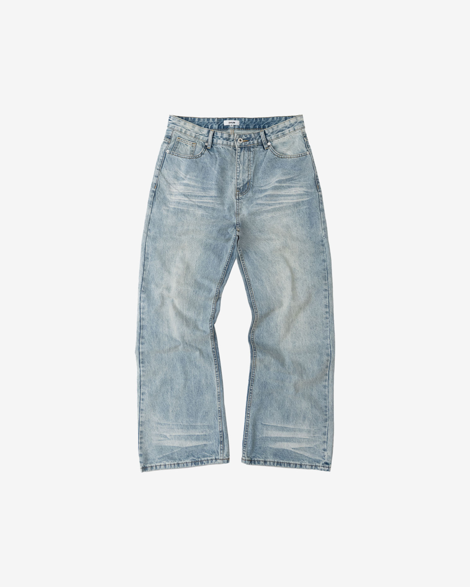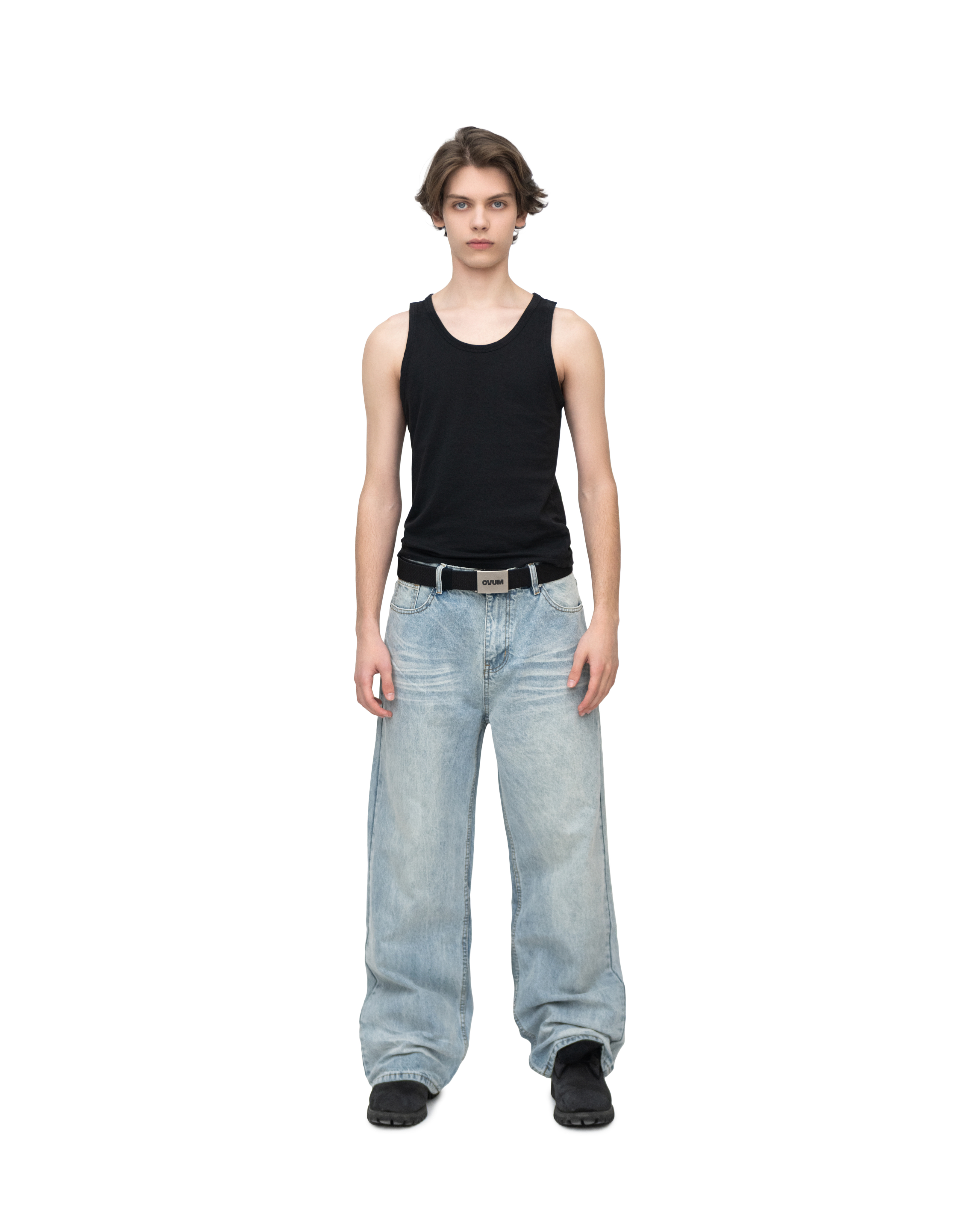 Джинсы свободного кроя из хлопкового денима. Средняя / низкая посадкая. Абсолютно универсальный выстиранный голубой цвет денима идеально впишется в твой летний образ. Фирменная ярко-красная нашивка с логотипом OVUM.