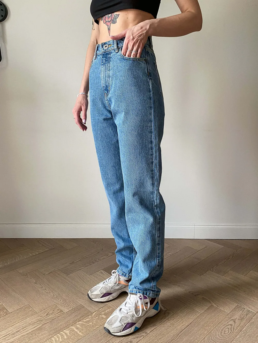 Классические джинсы в меру свободного кроя с высокой посадкой. Сшиты из качественной Европейской ткани с винтажной структурой в варке Stone Wash, максимально раскрывающую структуру Salt & Pepper. Джинсы выполнены из 100% хлопка, 20% из которого переработанный. Эти плотные нео-винтажные джинсы для тех кто любит плотные классические американские джинсы.