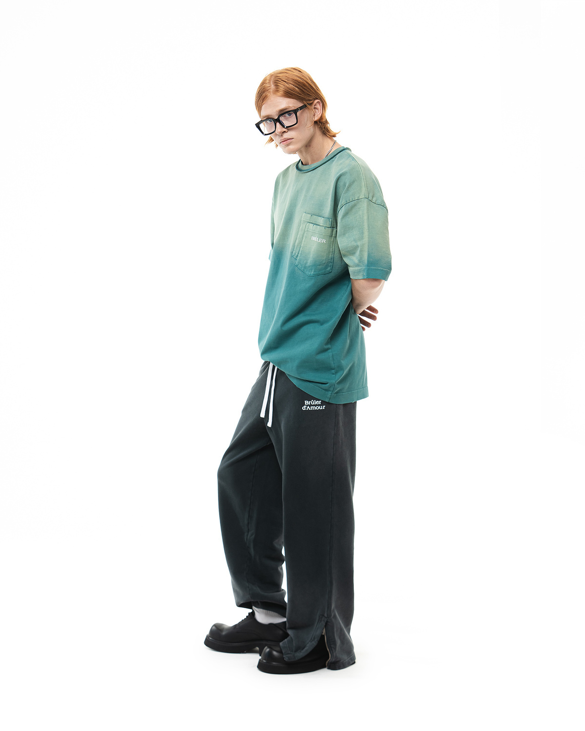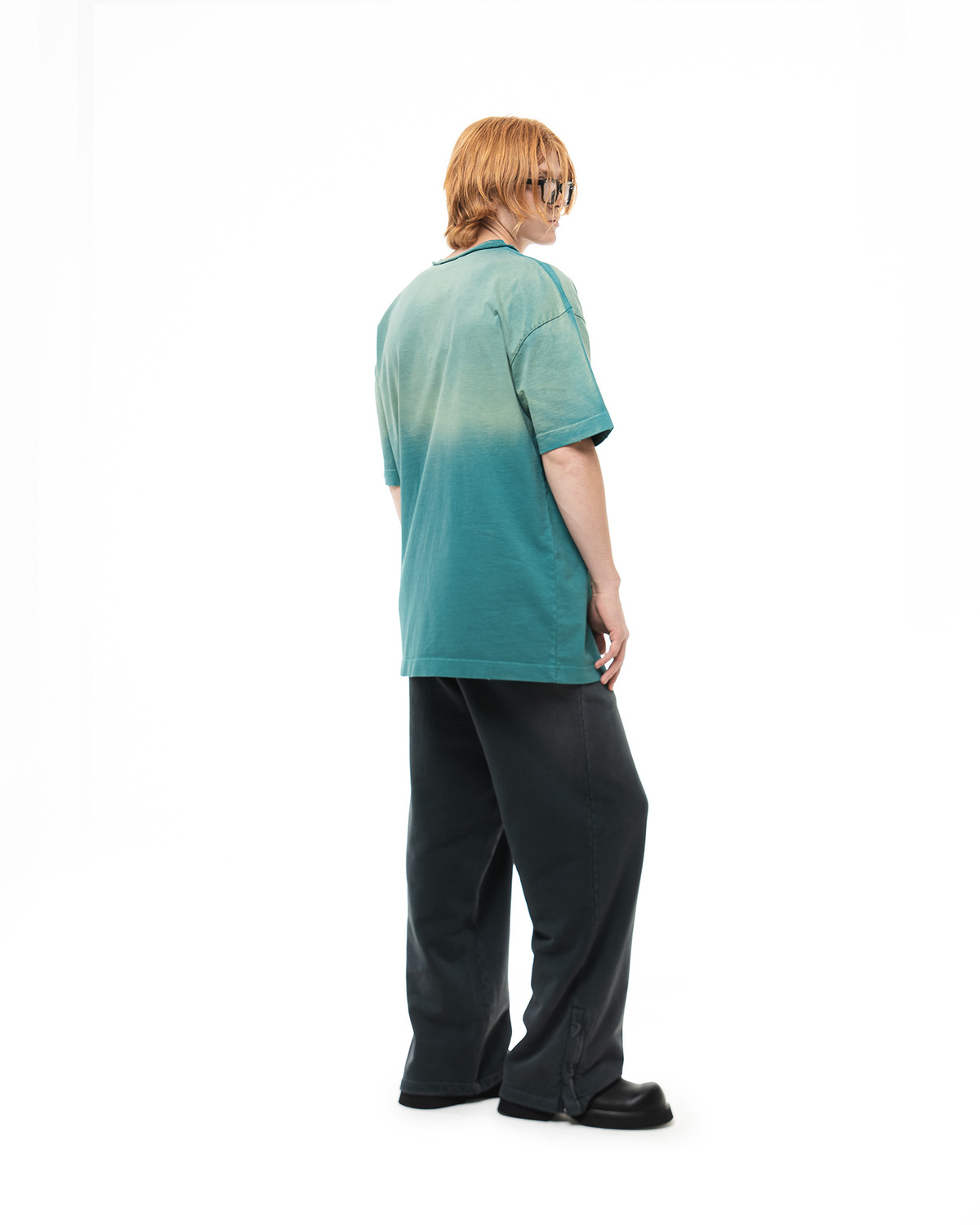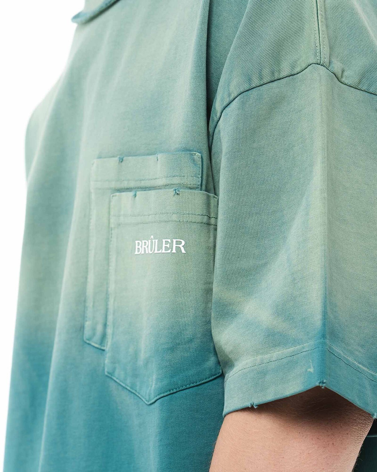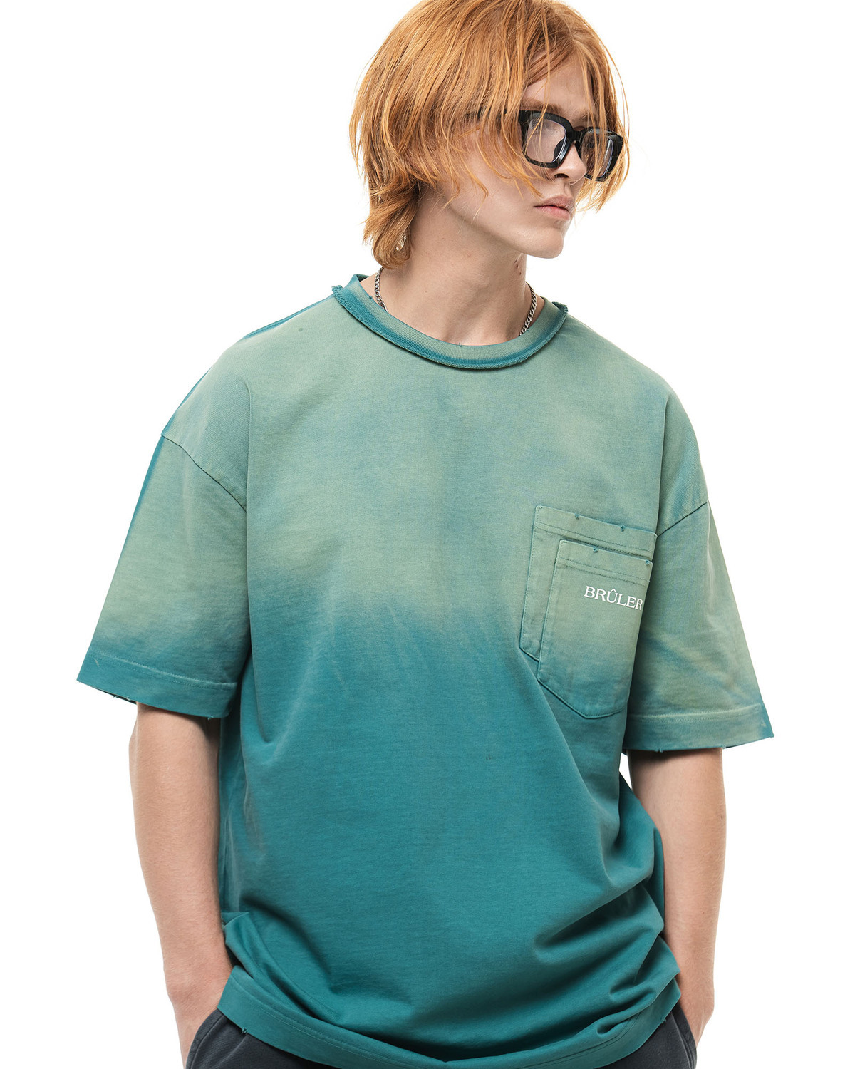 Футболка с градиентом изумрудного цвета и двойным карманом и лого.