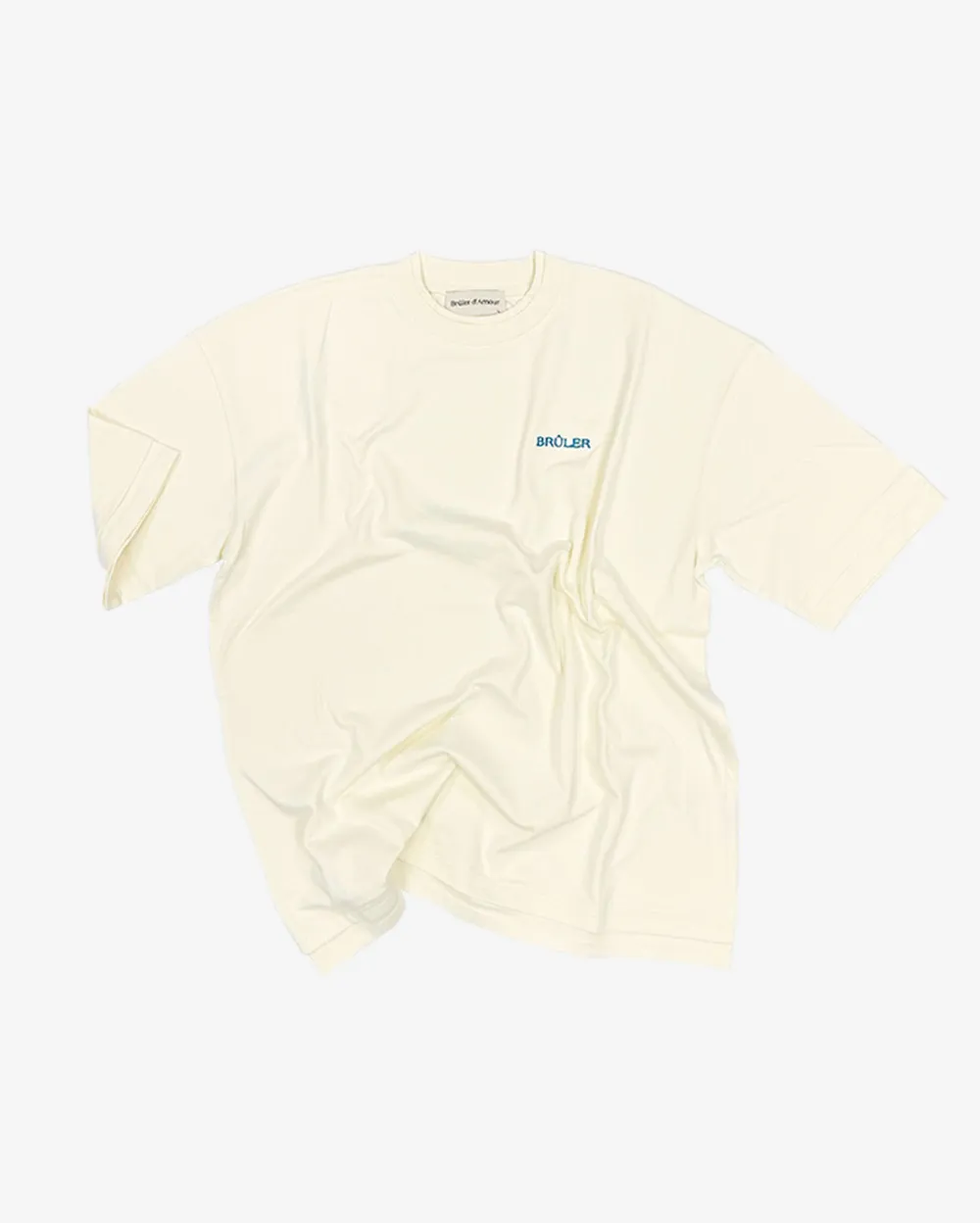 Двухслойная футболка кремового цвета с вышивкой на груди.
