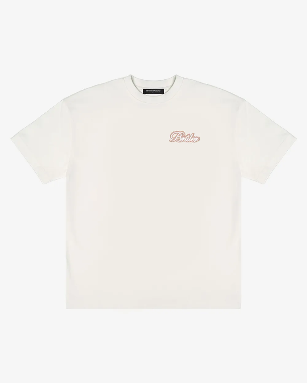 Базовая футболка свободного кроя. Объемный фирменный патч из шерпы нежно-розового цвета на груди. Плотность 300 грамм.