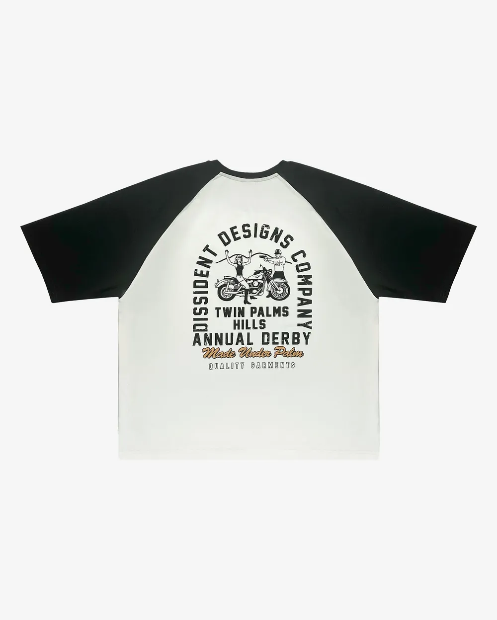 Контрастная футболка оверсайз-кроя с рукавом реглан, нанесение выполнено шелкографией