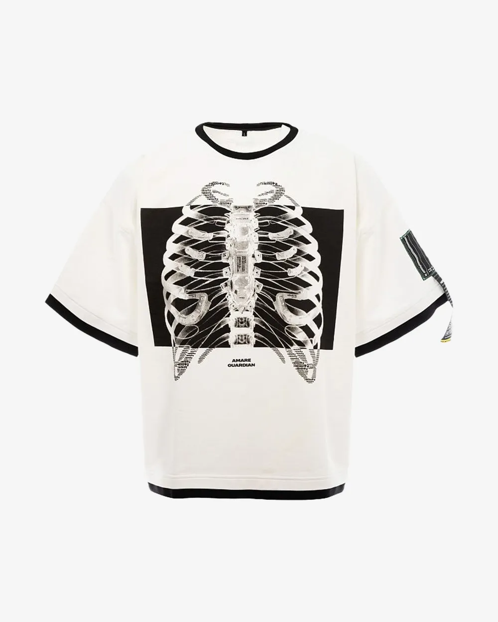Один из самых любимых нами силуэтов в коллекции Amare Guardian. Нежно-молочная двухнитка с контрастной черной отделкой, дополняющей наш классический крой Кимоно. Главная отличительная черта данной футболки - нанесение на груди по комбинированной технологии. Основная часть принта выполнена вытравной шелкографией, делая ее единой с тканью, а логотипы по низу и верху нанесены с небольшим подъемом, добавляя принту как визуальную, так и тактильную фактуру.