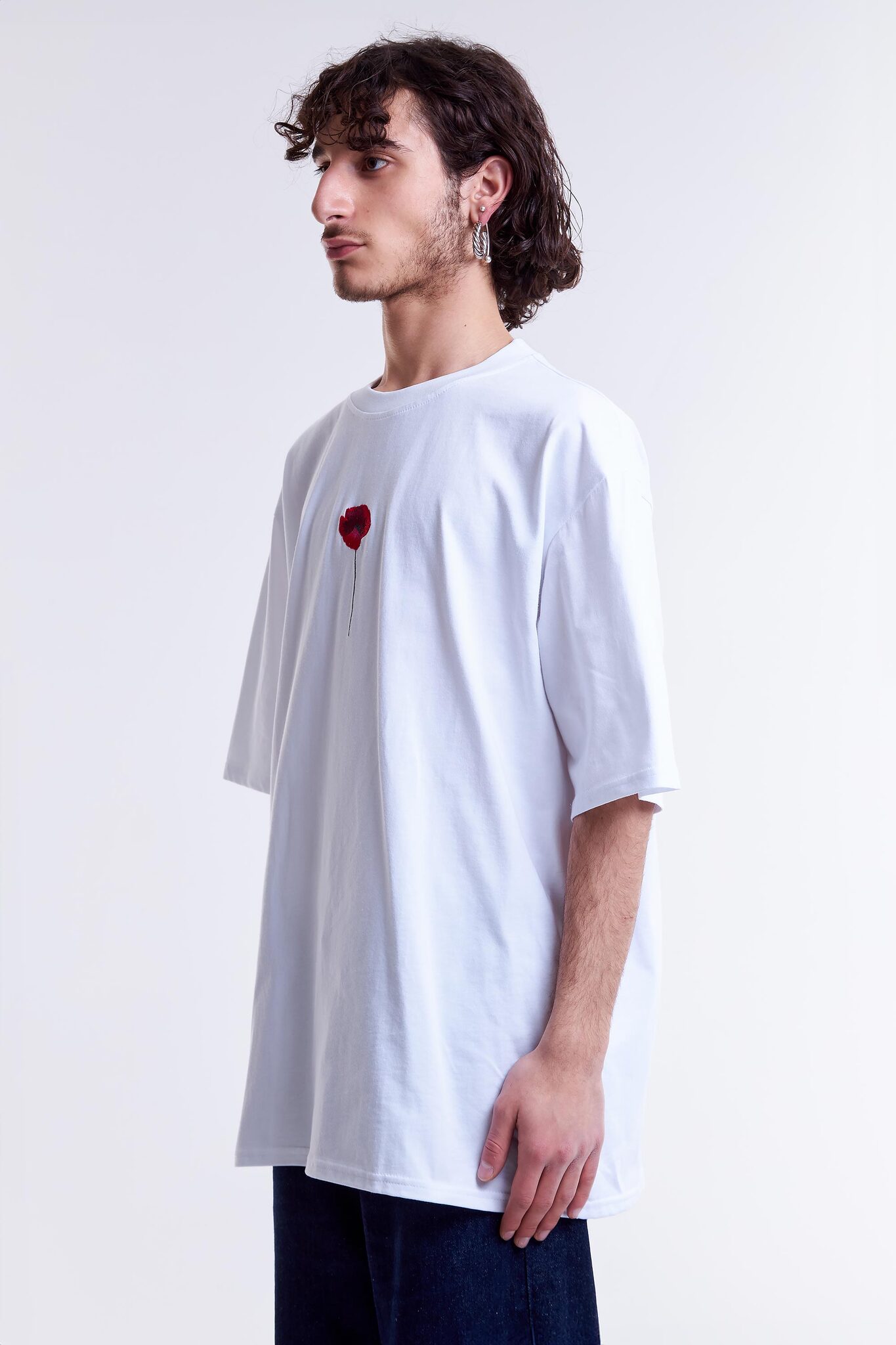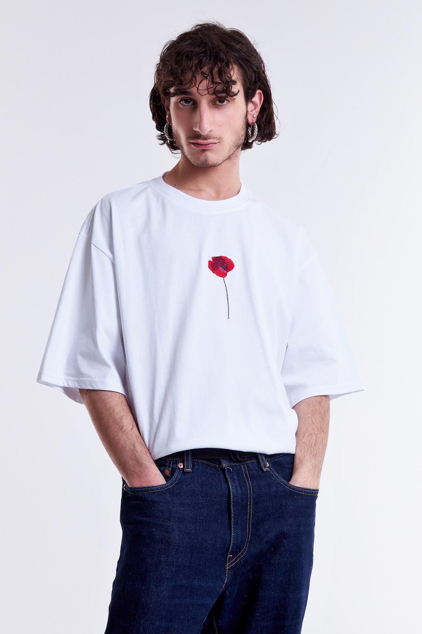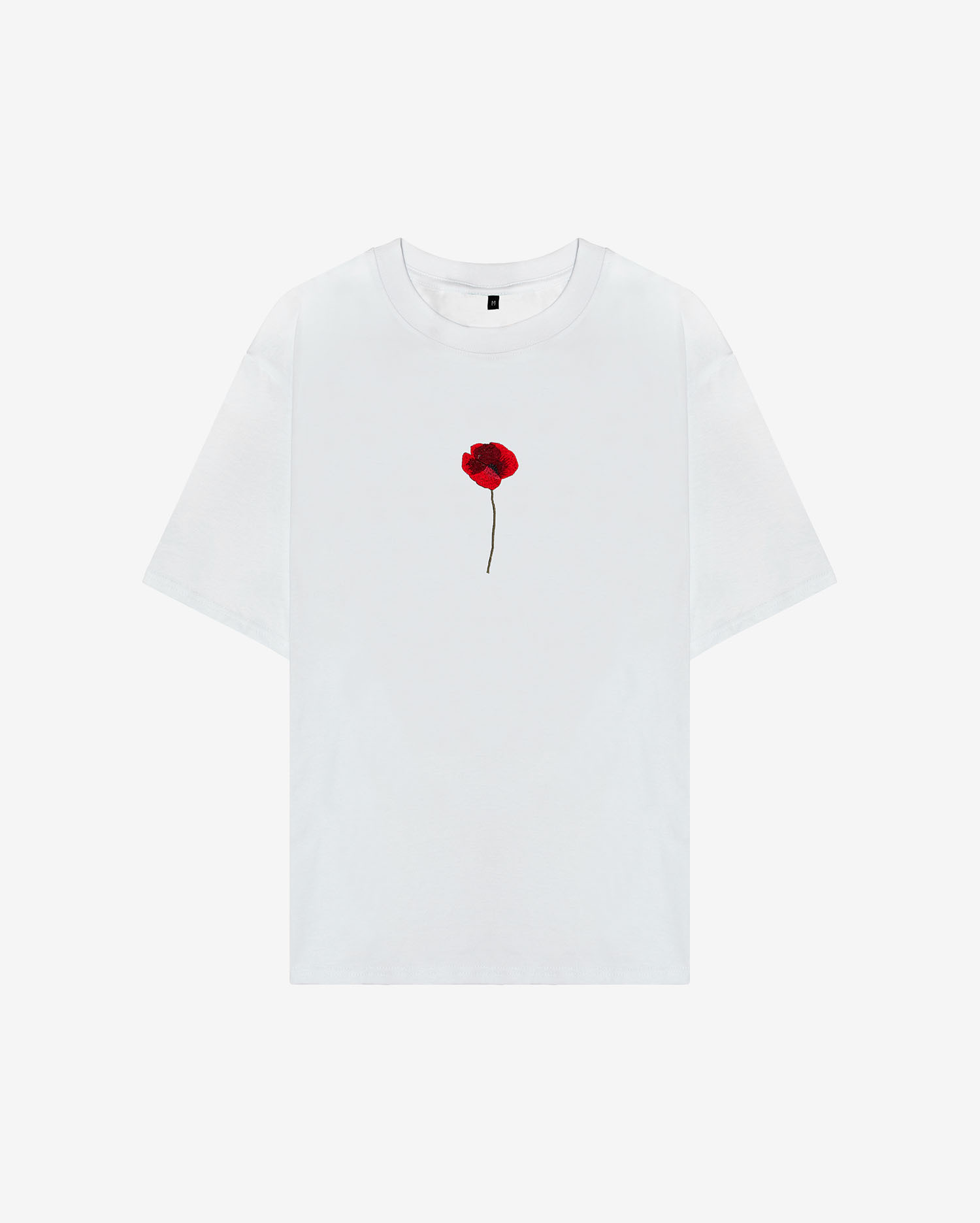 • Круглый вырез, заниженные плечи, прямой крой, вышивка Василек.