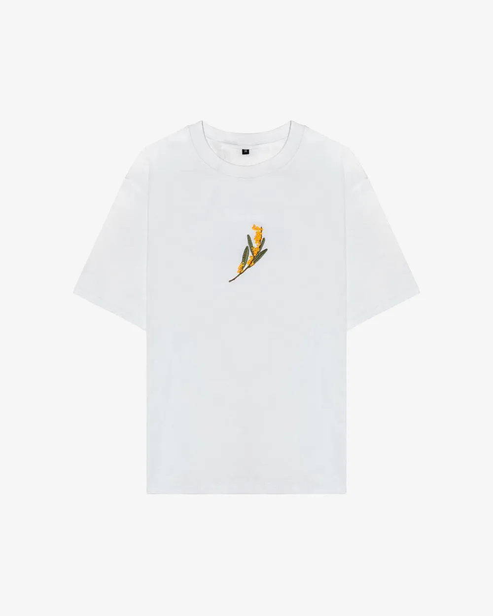 • Круглый вырез, заниженные плечи, прямой крой, вышивка Василек.