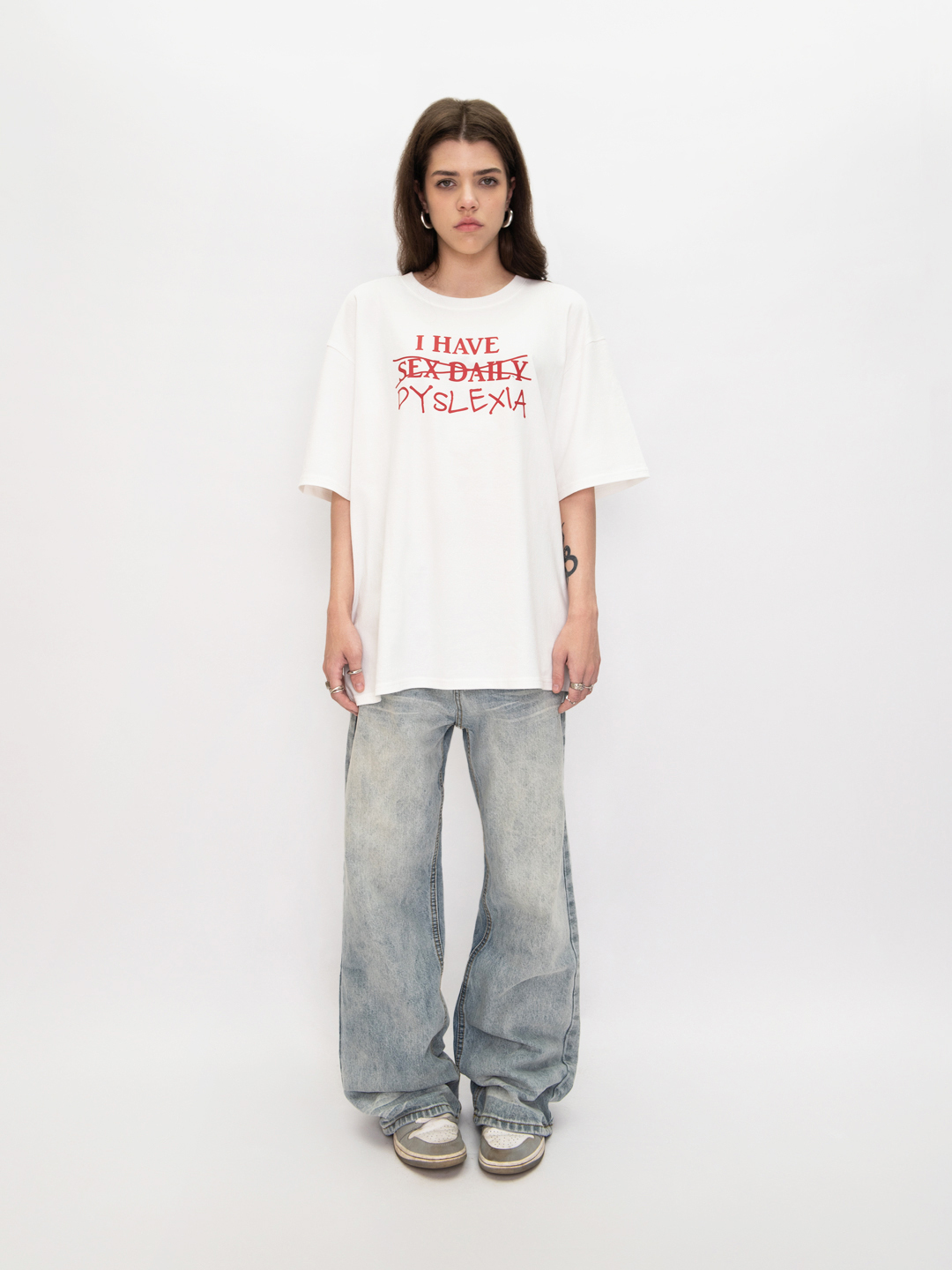 'Dyslexia' — ироничный принт, который точно заставит вас улыбнуться. Вопрос «Где ты нашел такую футболку?» станет вашим лучшим комплиментом.