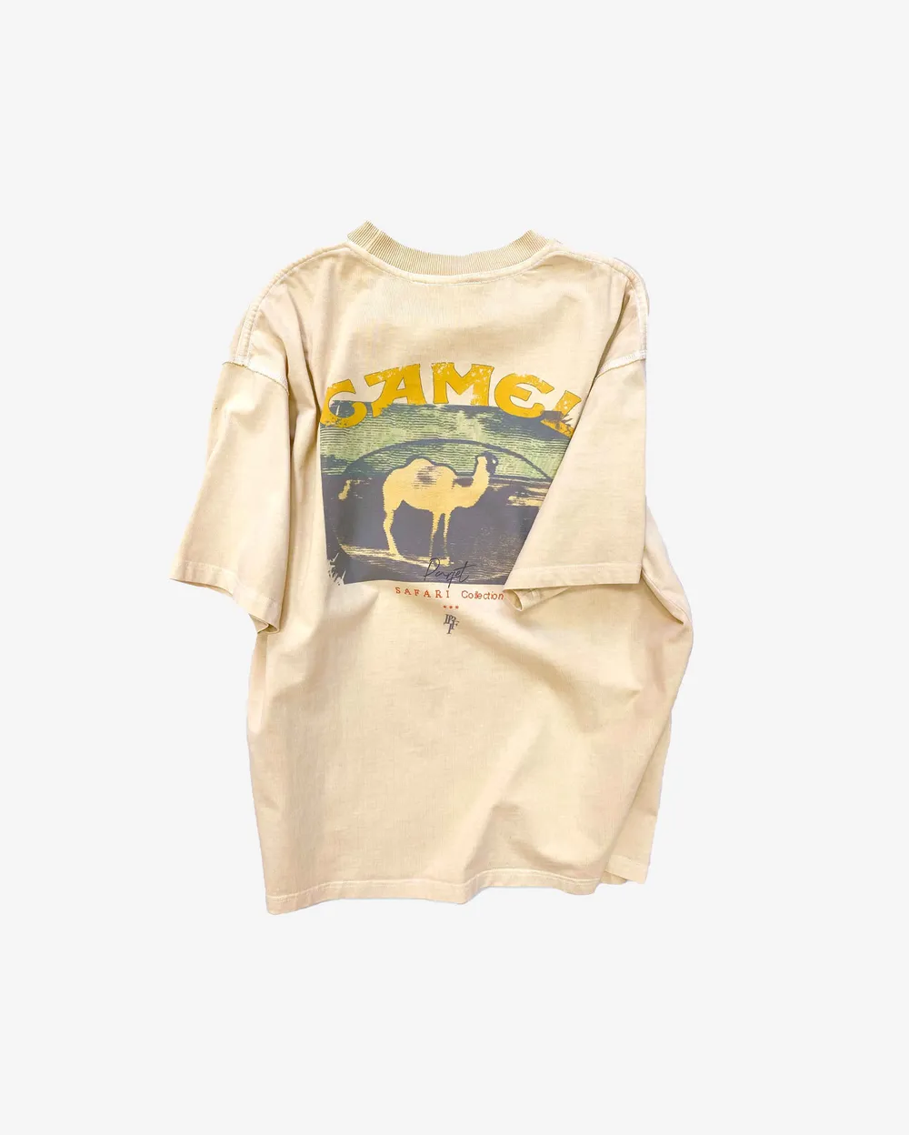 Футболка, выгоревшая под солнцем пустыни. С принтом на спине и вышивкой на груди
