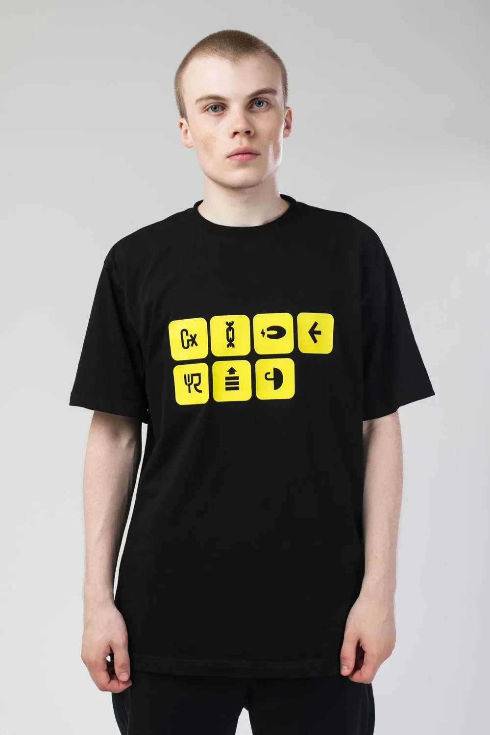 Футболка с увеличенной размерной сеткой и кроем со спущенным плечом.