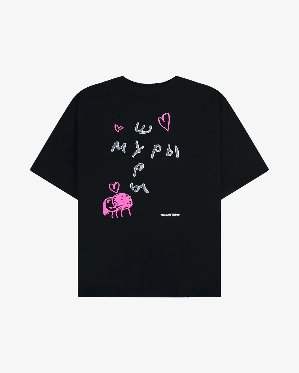 Футболка свободного кроя в чёрном цвете с оригинальными принтами на груди и спине. Выполнена из натурального плотного хлопка, который почти не мнётся даже после стирки.