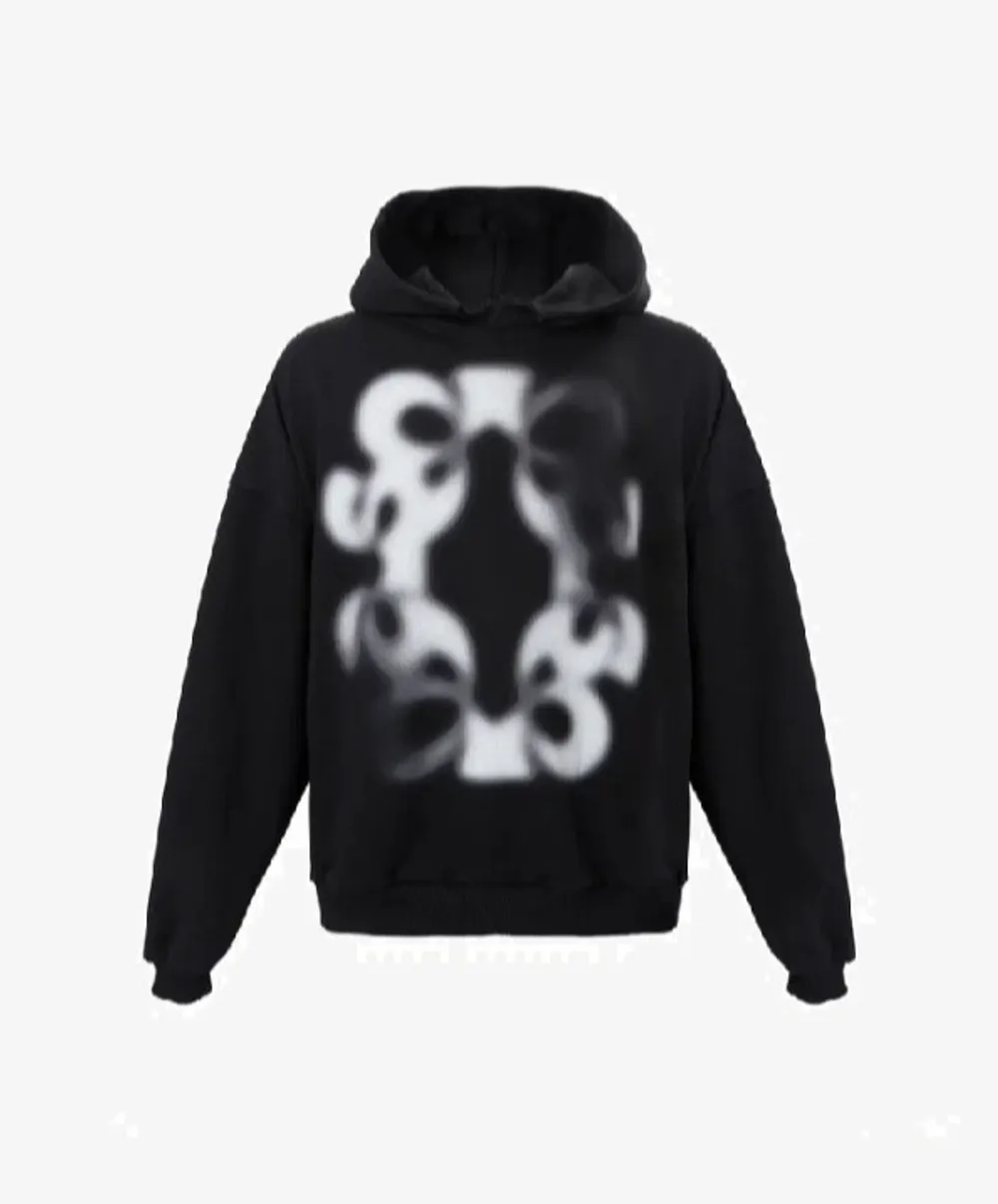Черное худи в принтом в виде магического зеркала в фирменном стиле