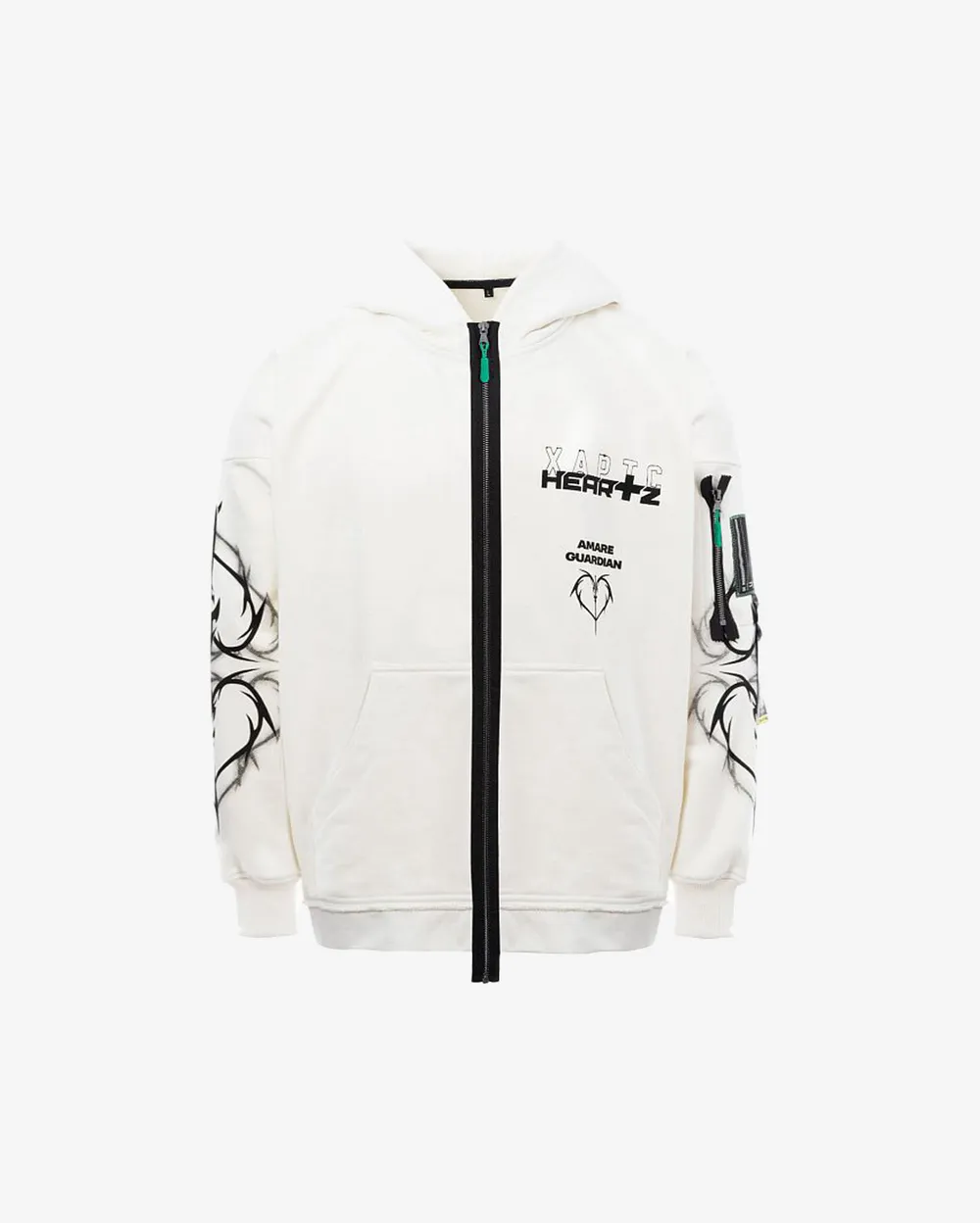 Citadel - самая проработанная из всех худи на молнии что мы выпускали. Простой и лаконичный образ прямого оверсайз-кроя раскрывается в мелочах. Стилизованные логотипы Amare Guardian на рукавах. Принт "The Citadel" нанесен водными красками на внутреннюю часть спины, пропитывая собой петлю. Особая вышивка на капюшоне. Врезной карман на плече с металлической молнией. Двойная нижняя часть комбинирует две разных по плотности ткани. Пуллеры в нашем фирменном цвете на бегунках молний. Комплект поставки - коллекционные стикеры, силиконовая бирка-брелок, брендированная упаковка.