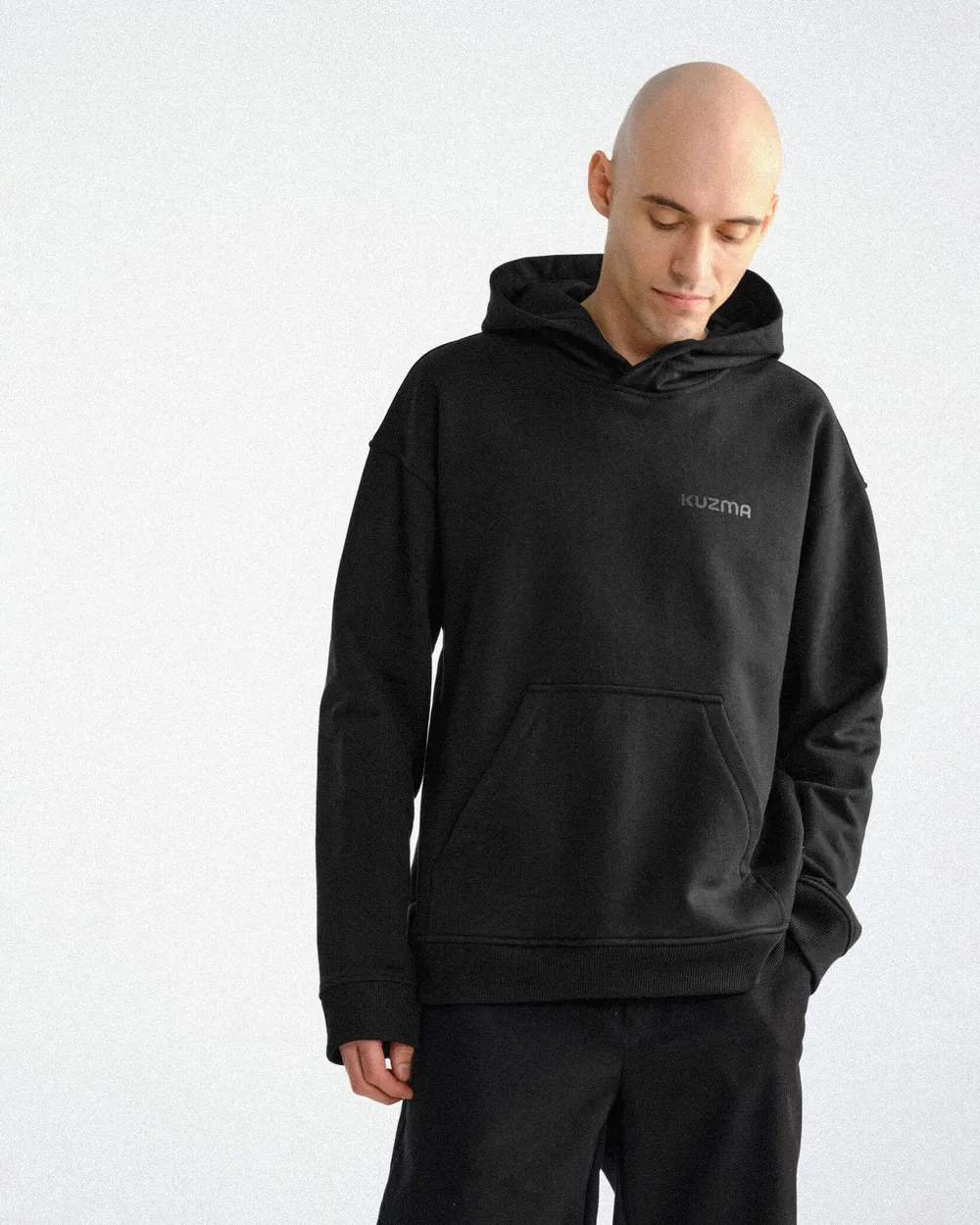Черное худи расслабленное из тяжелого хлопка 100 % 475 гр. / м.