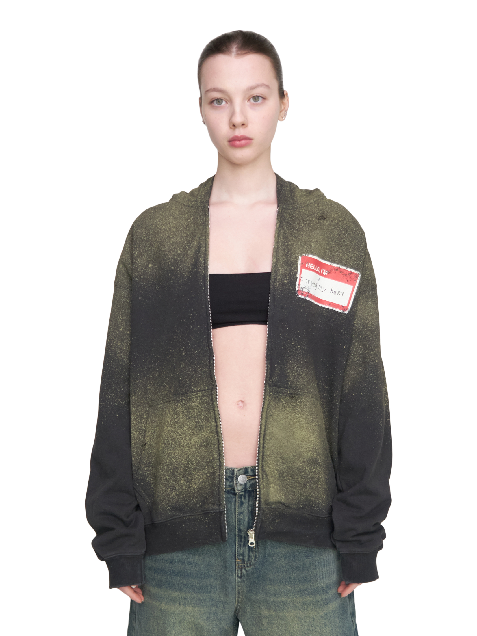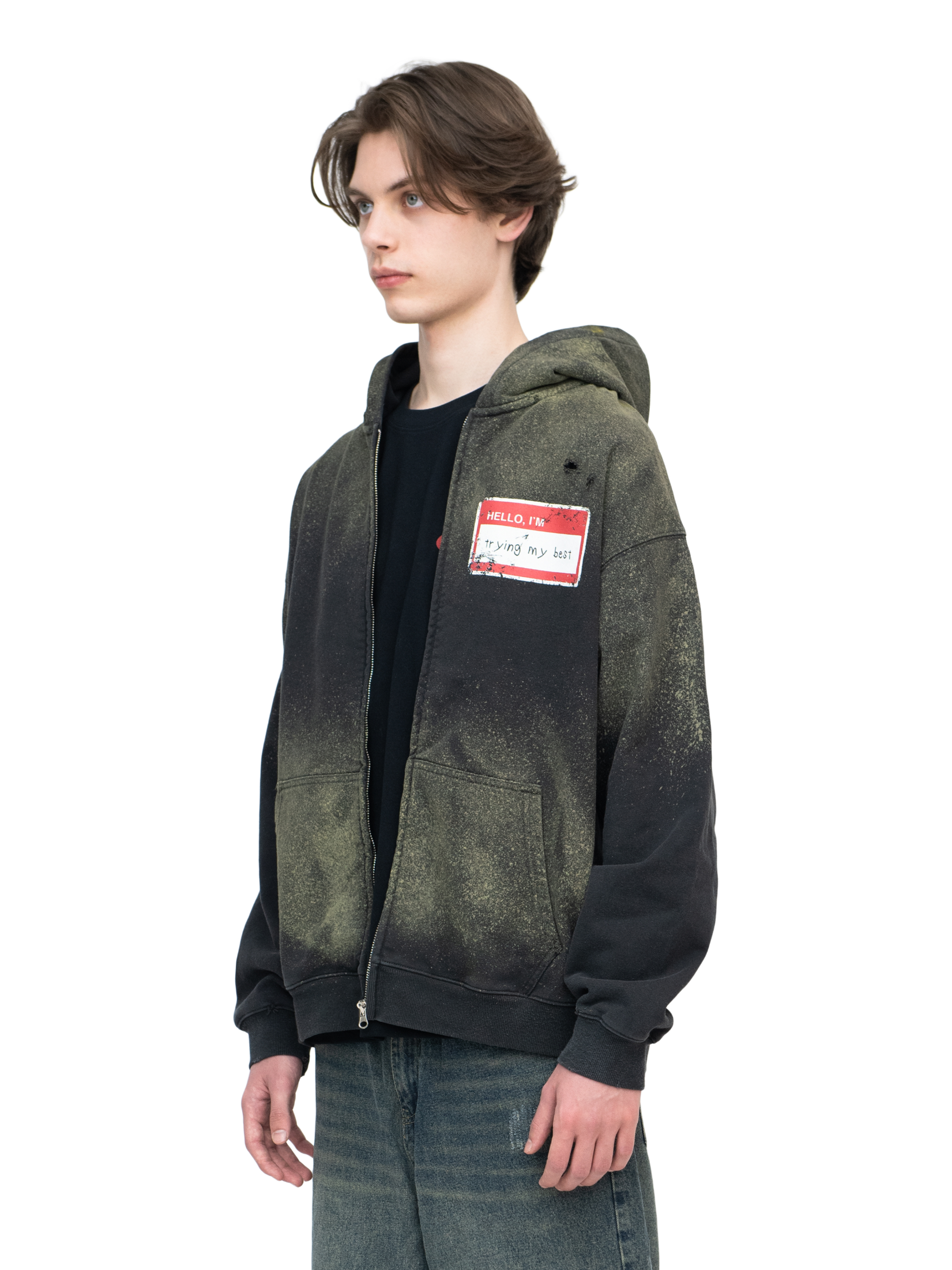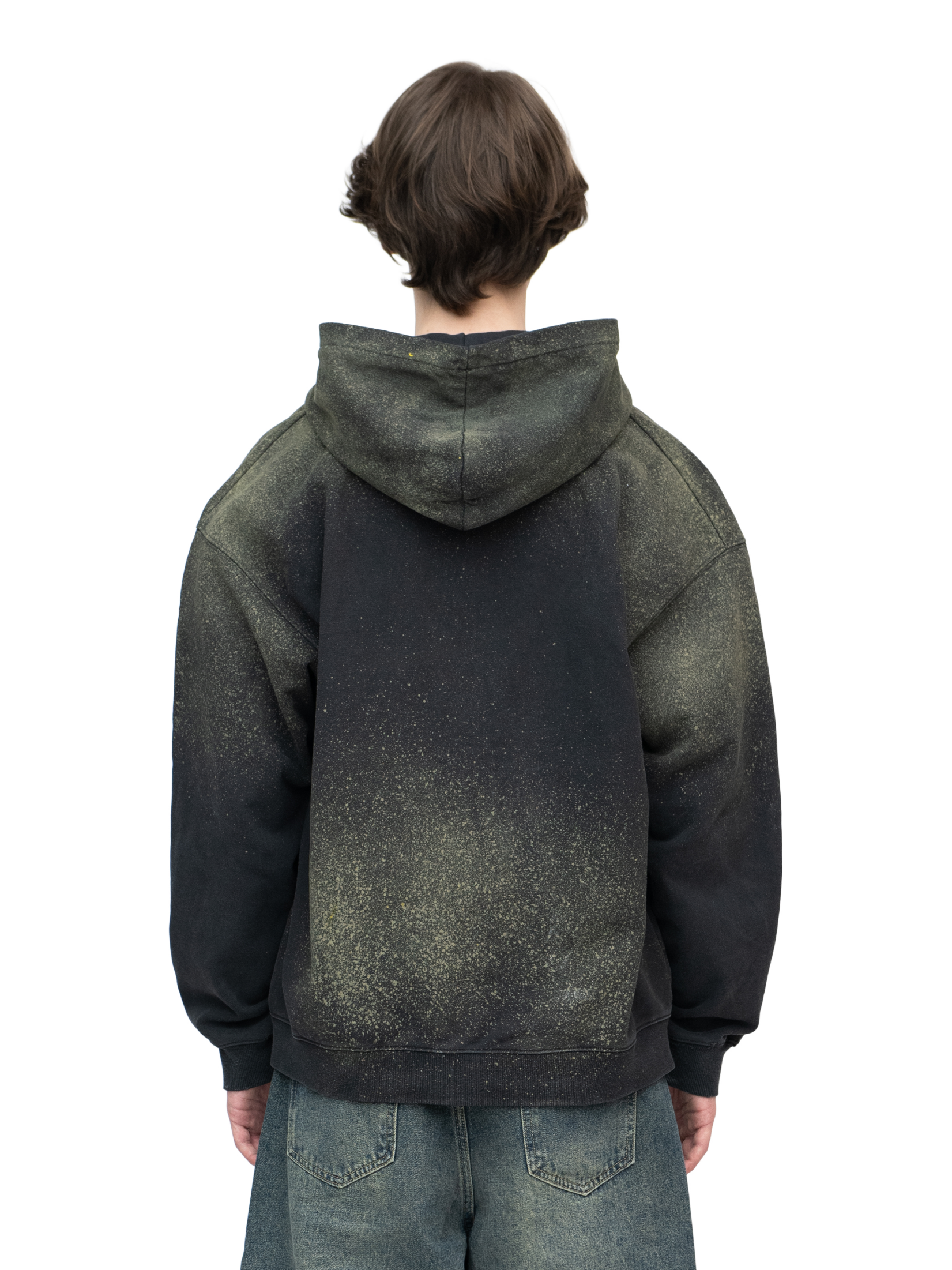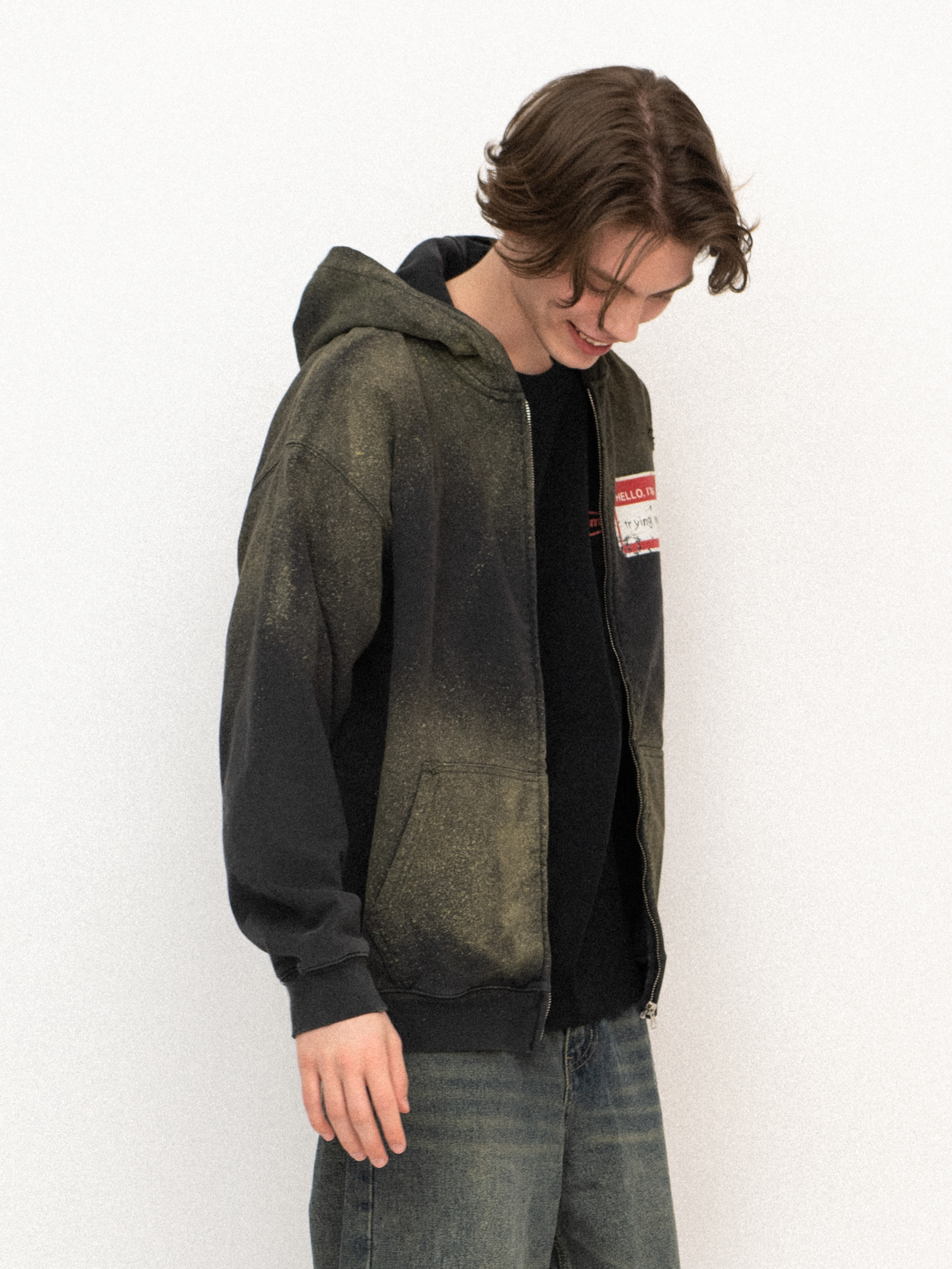 Distressed zip hoodie — результат наших экспериментов. Уникальный экспонат гардероба благодаря неповторимому рисунку ручного напыления имитации грязи, стирке с камнями и ручной абразивной обработке деталей, создается впечатление будто бы вещь с вами всю жизнь.