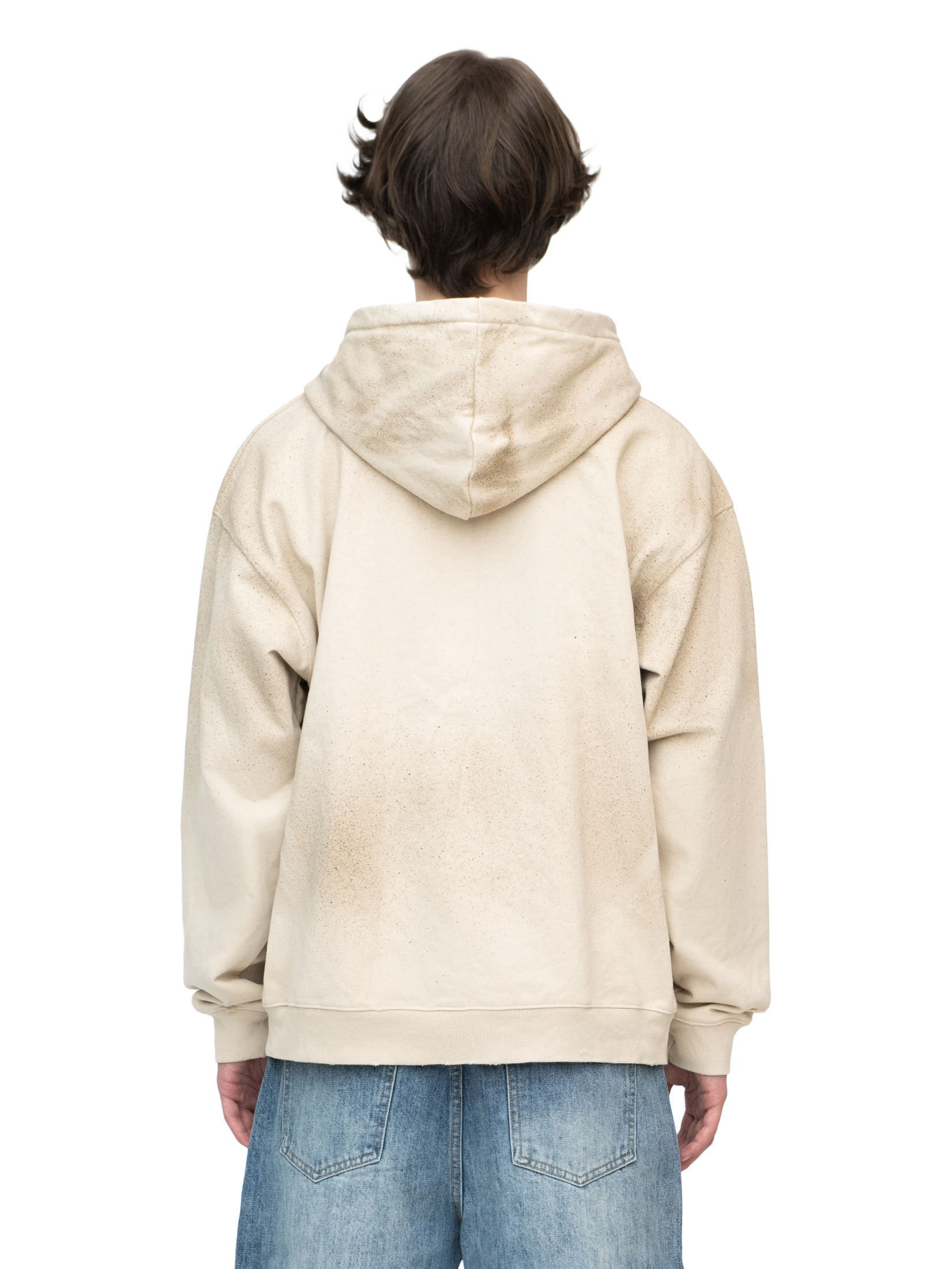 Distressed zip hoodie — результат наших экспериментов. Уникальный экспонат гардероба благодаря неповторимому рисунку ручного напыления имитации грязи, стирке с камнями и ручной абразивной обработке деталей, создается впечатление будто бы вещь с вами всю жизнь.