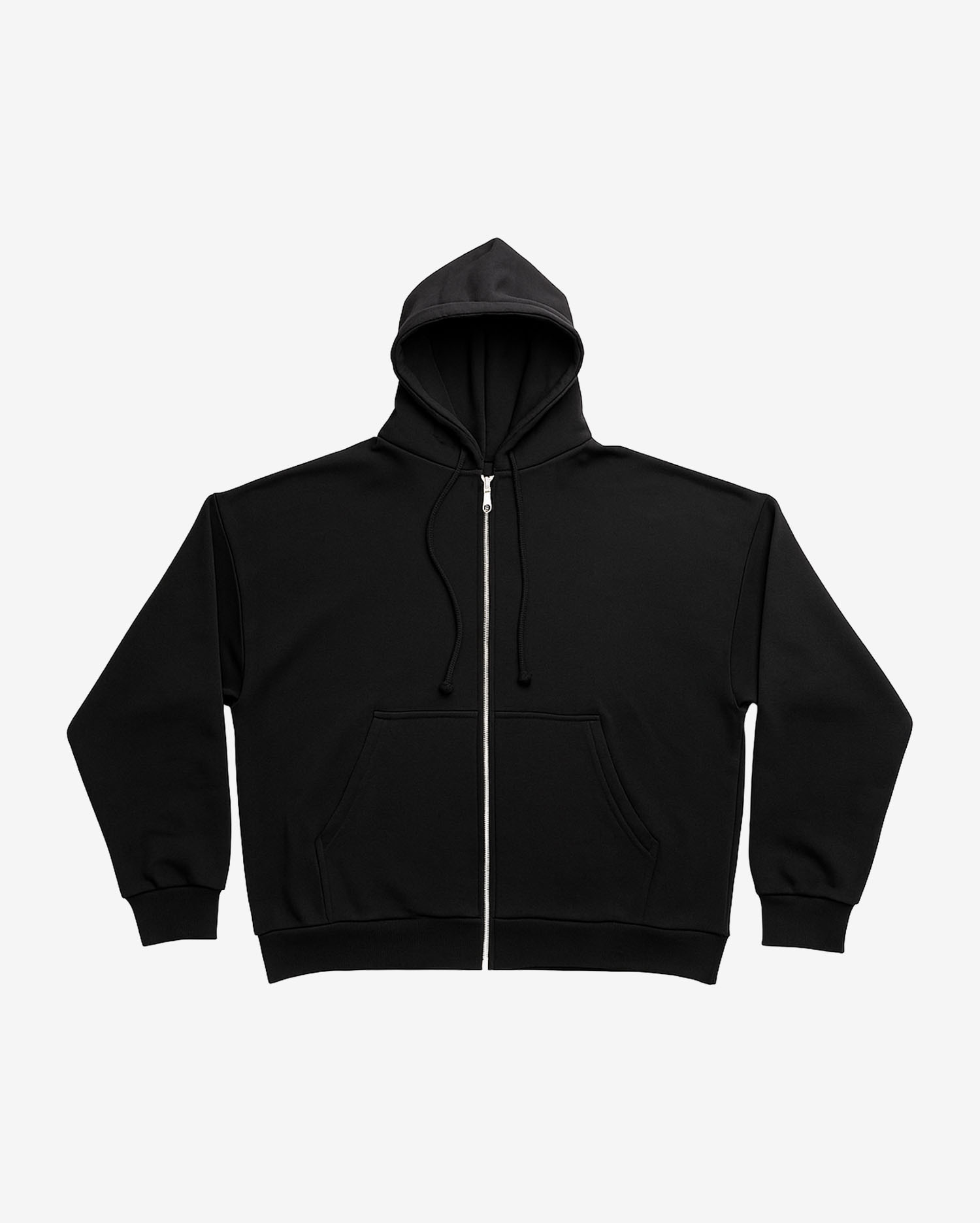Худи оверсайз на молнии из плотного футера без начёса черного цвета.