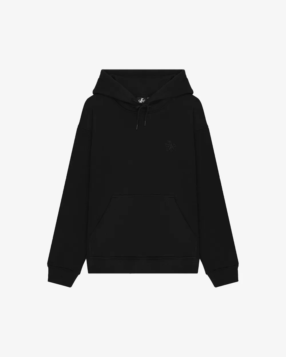 Худи свободного кроя из футера без начеса, приспущенная линия плеча, втачной рукав, затягивающийся на шнурок капюшон, подол и манжеты в рубчик, накладной передний карман, вышивка на груди. На Арсене – размер M, его рост 177 см. На Элине – размер S, ее рост 157 см.