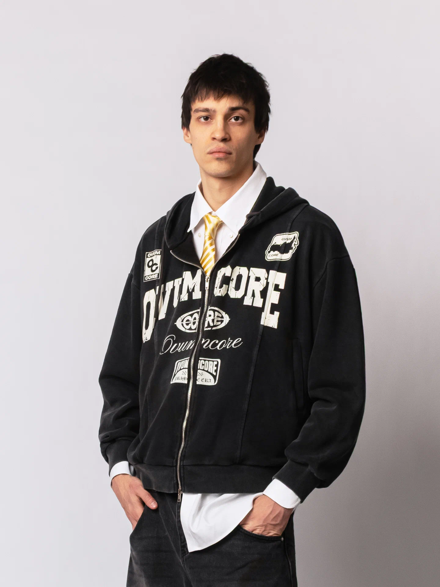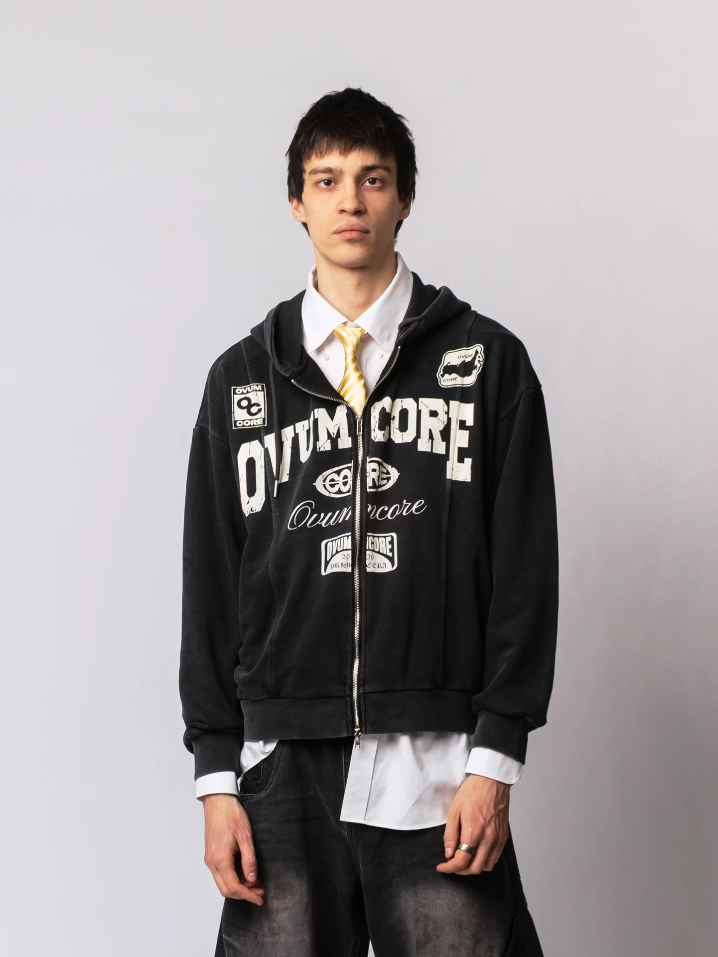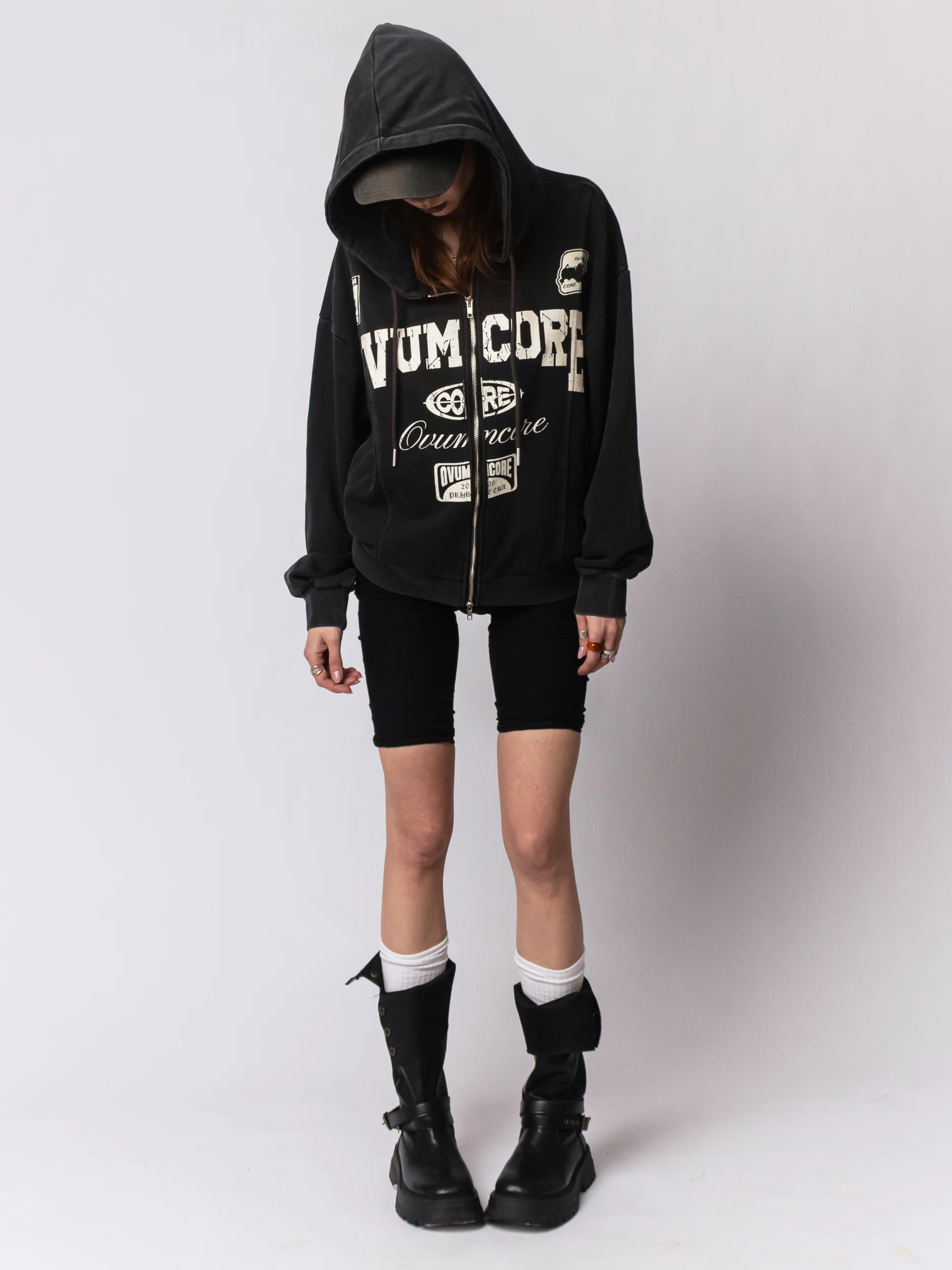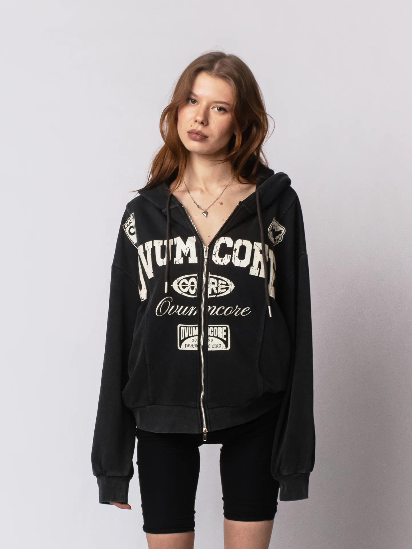 Оверсайз зип худи из легкого хлопкового футера с выстиранным эффектом.