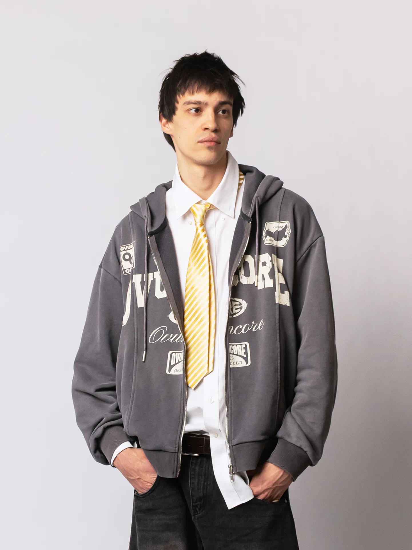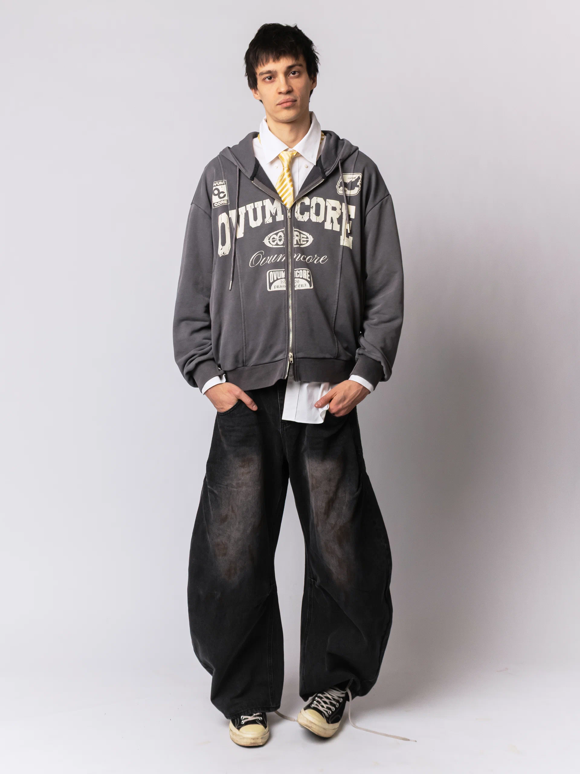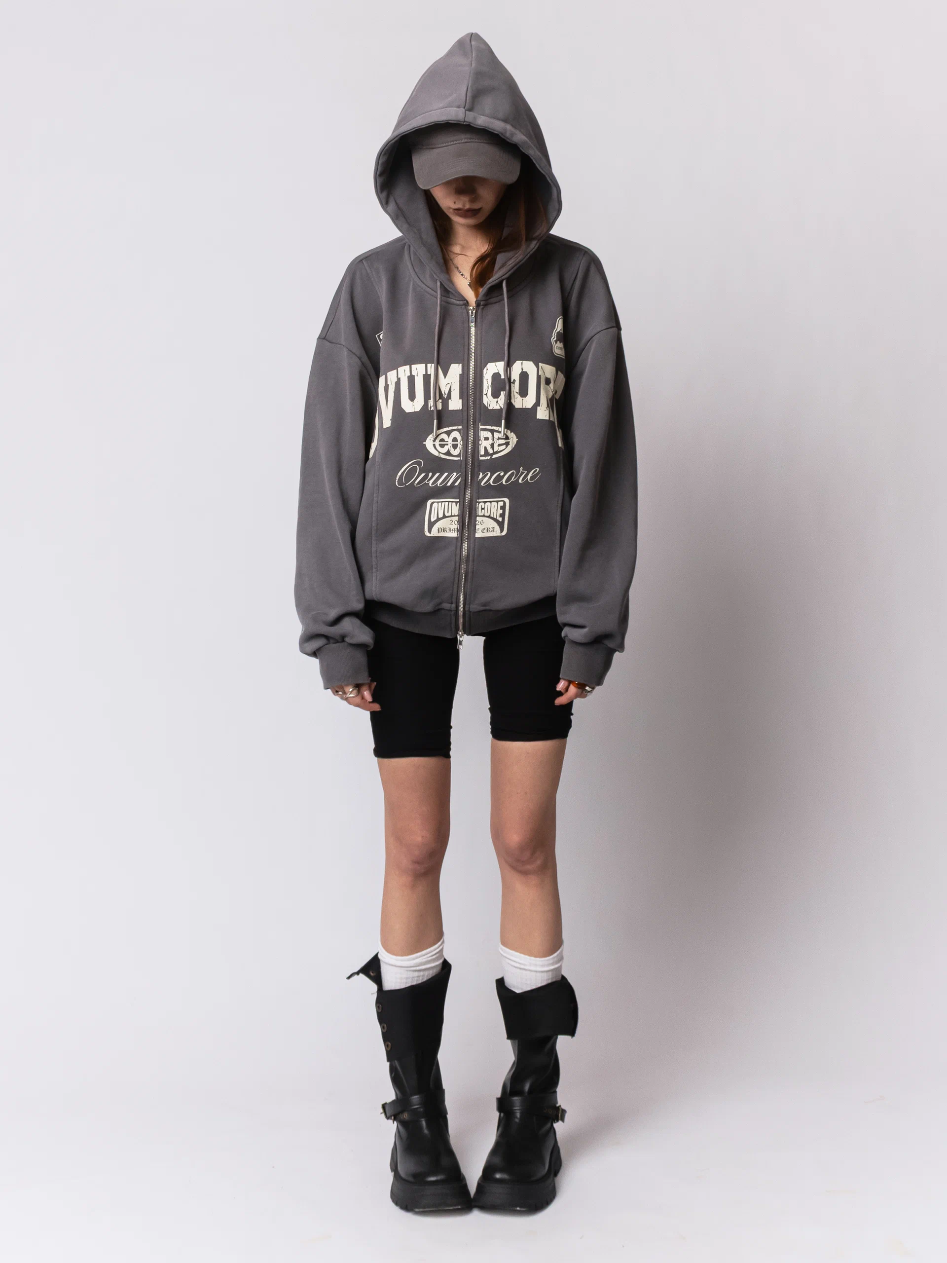 Худи Zip Crop Ovum etched grey