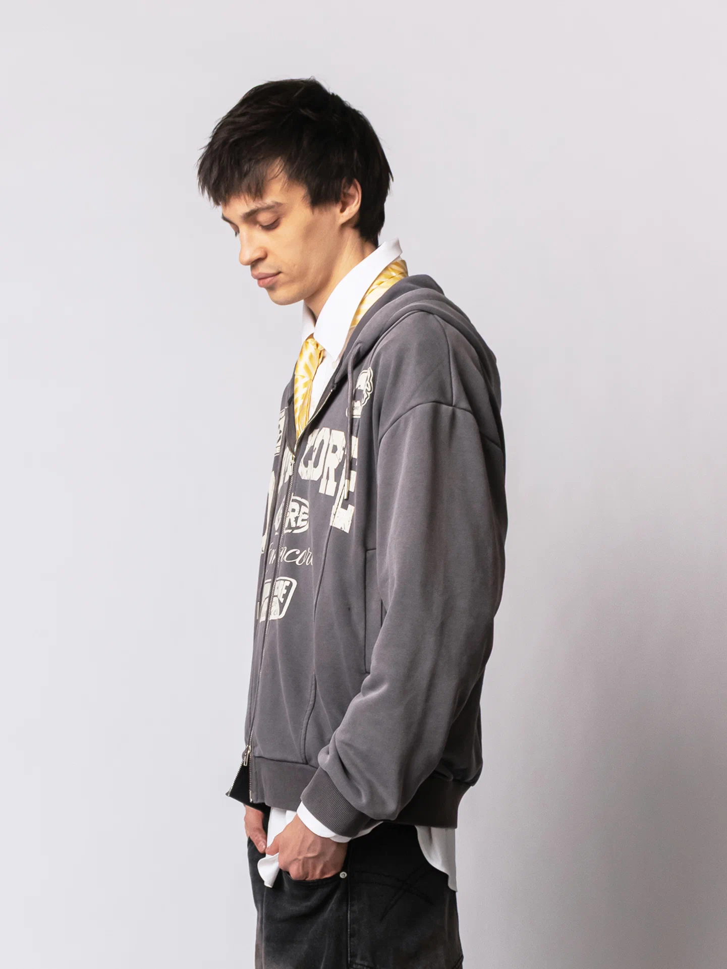 Оверсайз зип худи из легкого хлопкового футера с выстиранным эффектом и капюшоном на шнурке.