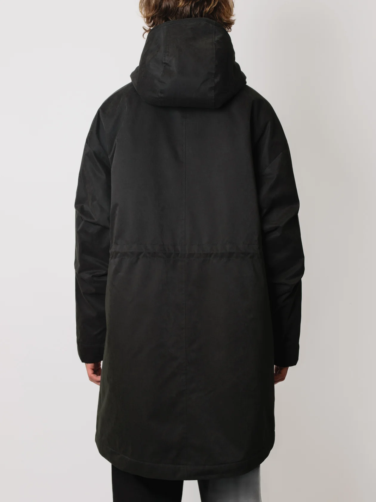 Демисезонная классическая парка свободного силуэта на тонком синтепоне не даст замёрзнуть в непогоду. Ткань с водоотталкивающей пропиткой имеет приятную бархатную фактуру.Три внешних кармана и один внутренний на молнии.
