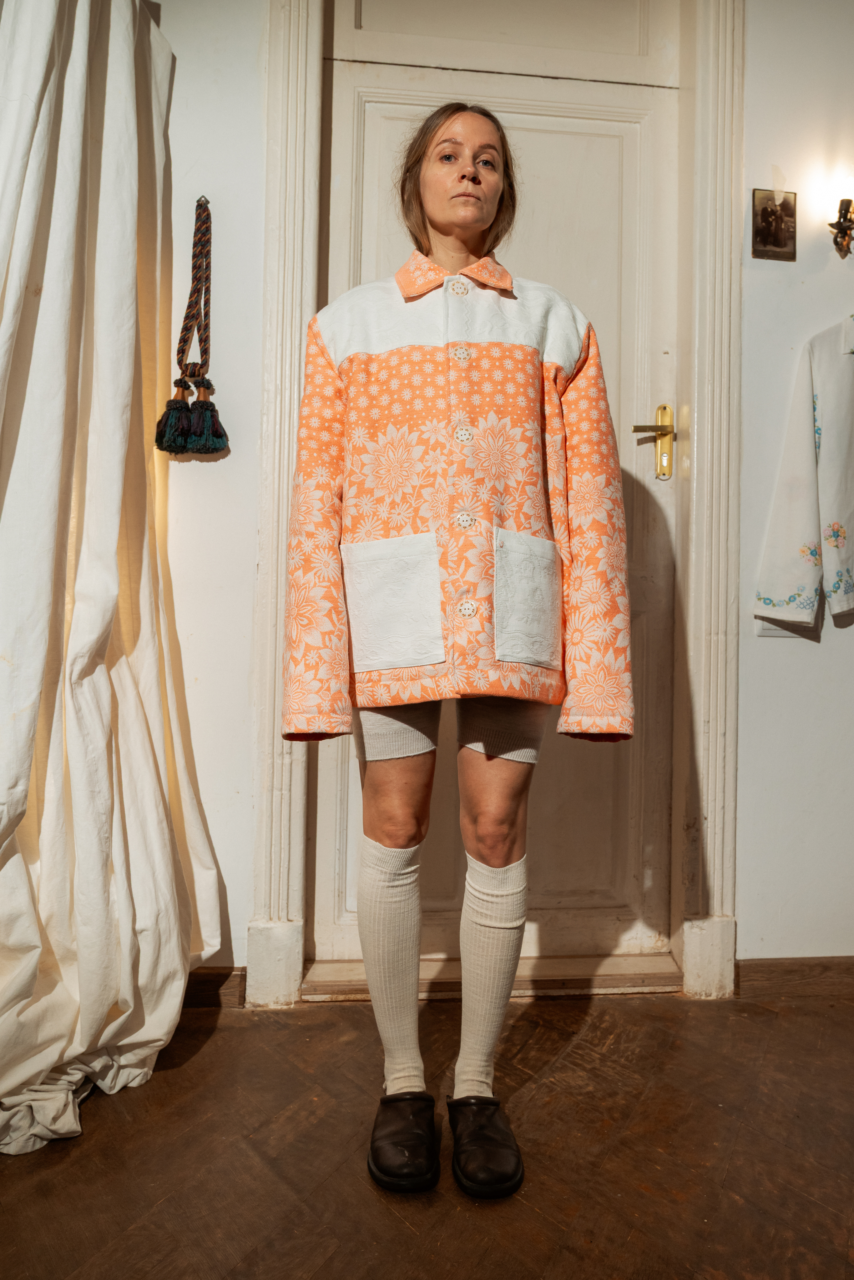 Утепленная Куртка сшита в одном экземпляре из двух антикварных хлопковых покрывал (100% хлопок) с растительными узорами, периода 1970-80х годов.