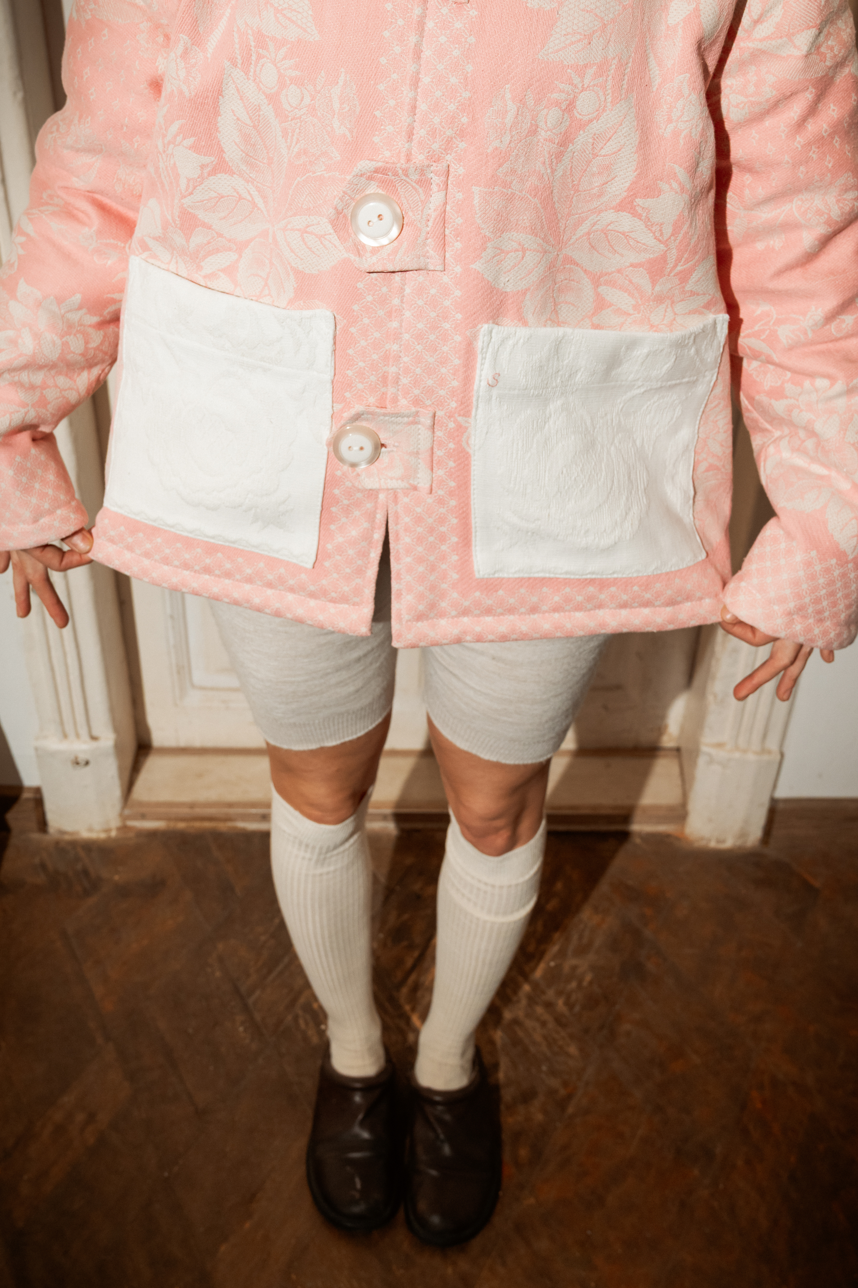 Утепленная Куртка сшита в одном экземпляре из двух антикварных хлопковых покрывал (100% хлопок) с растительными узорами, периода 1960-80х годов.