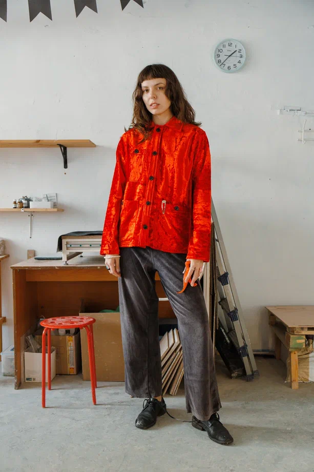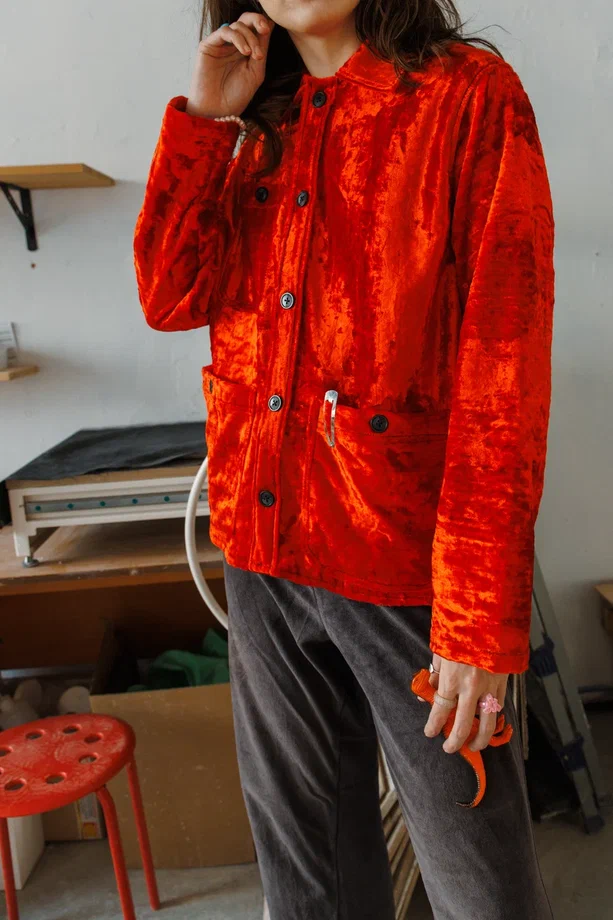 Рабочая Куртка сшита в одном экземпляре из антикварного хлопкового бархата (хлопок 100%), периода 1950х годов.