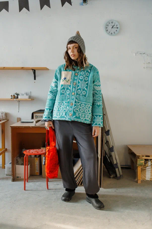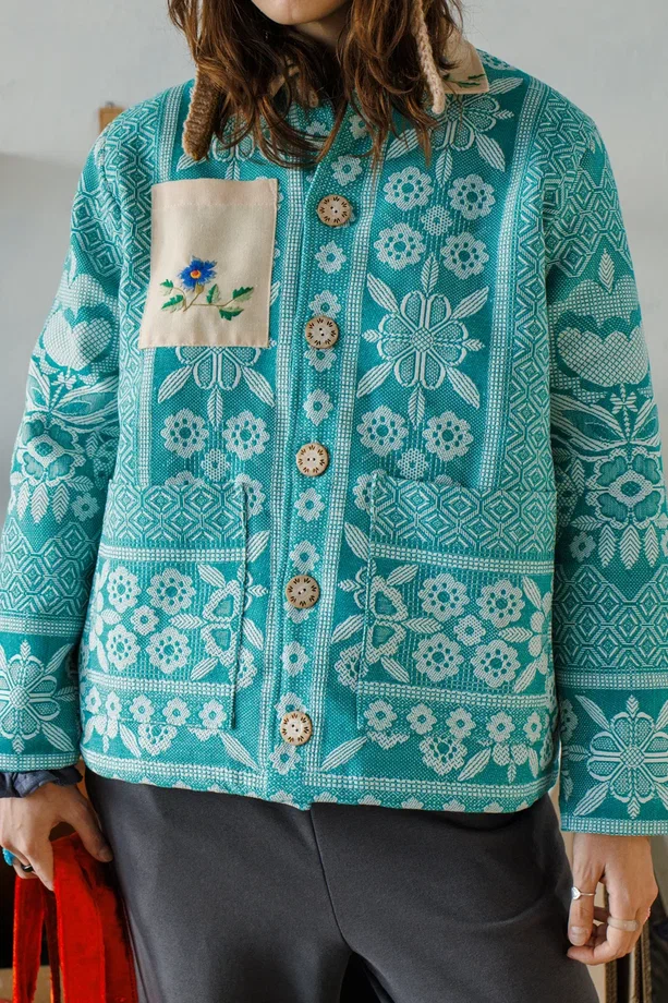 Утепленная Куртка сшита в одном экземпляре из антикварного хлопкового покрывала с цветочным узором (хлопок 100%), периода 1970х годов. Маленький карман и воротник