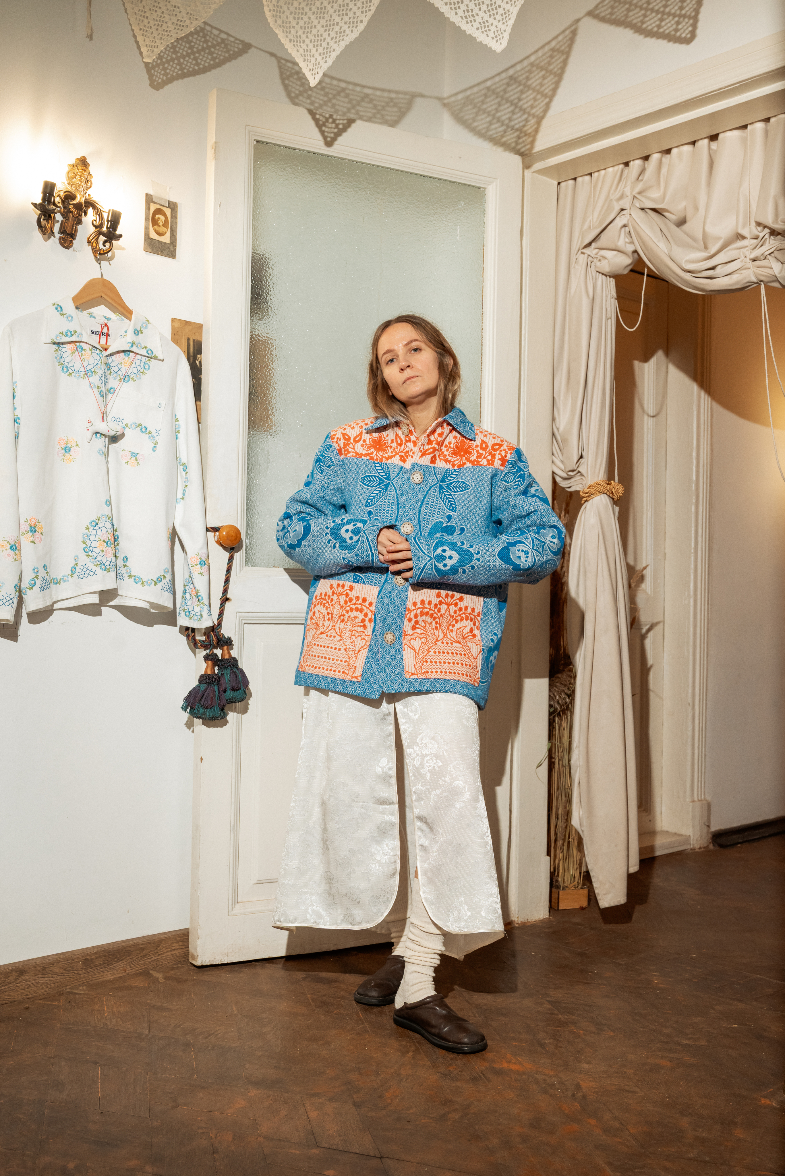 Утепленная Куртка сшита в одном экземпляре из двух антикварных хлопковых покрывал (100% хлопок) с растительными узорами, периода 1960-70х годов.