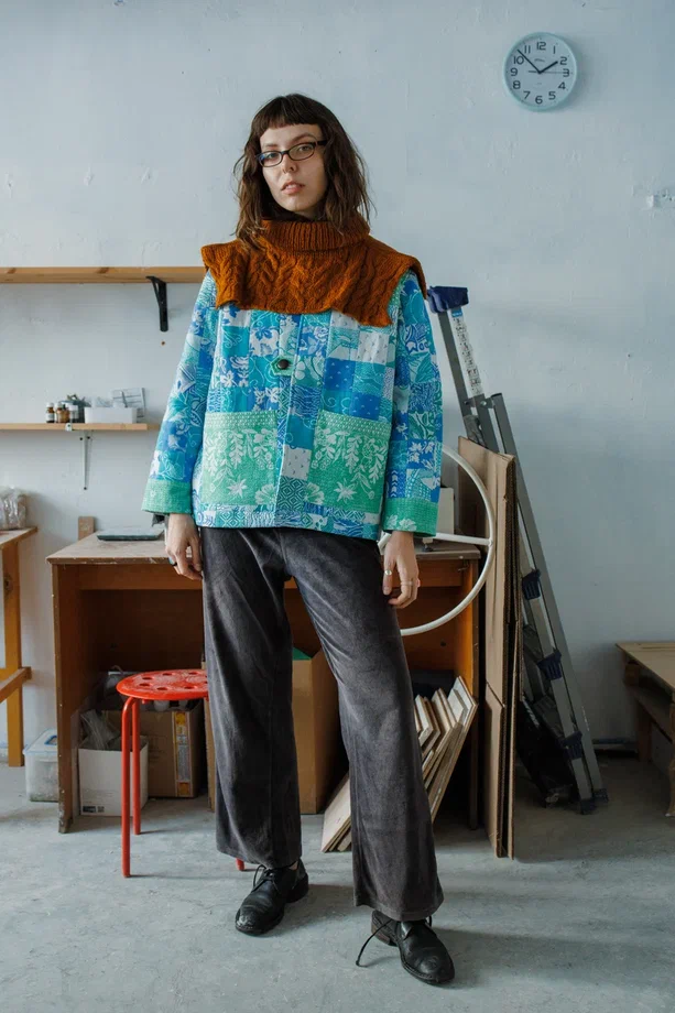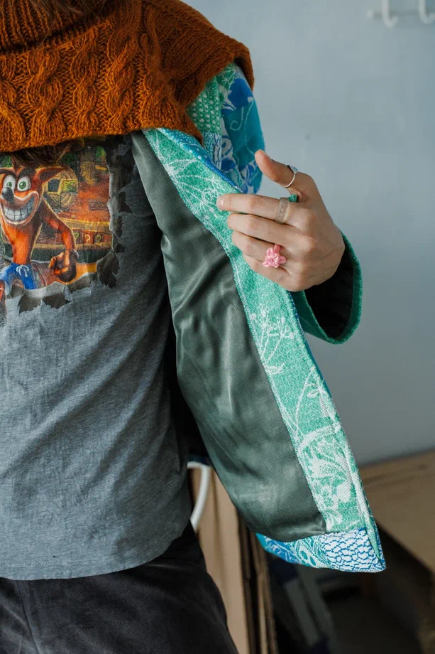 Куртка сшита в одном экземпляре в технике пэчворк из антикварных хлопковых покрывал (хлопок 100%) с растительным узором, периода 1960-70х годов.