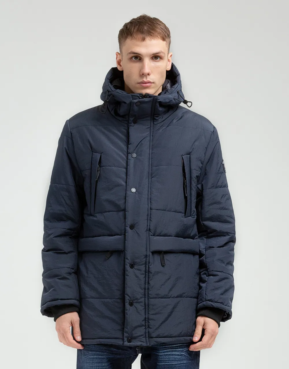 Удлинённая куртка из материала Crinkle Nylon, с утеплителем нового поколения Shelter® Loft. Утеплитель Shelter® Loft обеспечивает превосходную теплозащиту, сохраняя легкий вес, эффективную воздухопроницаемость, мягкость и повышенный объем, сравнимый с пухом. Снаружи куртки 4 удобных кармана на молнии. Эластичные манжеты на рукавах. Внутри большой карман на молнии с логотипом Manneken Pis и карман на липучке. В капюшоне есть шнуры с фиксатором.