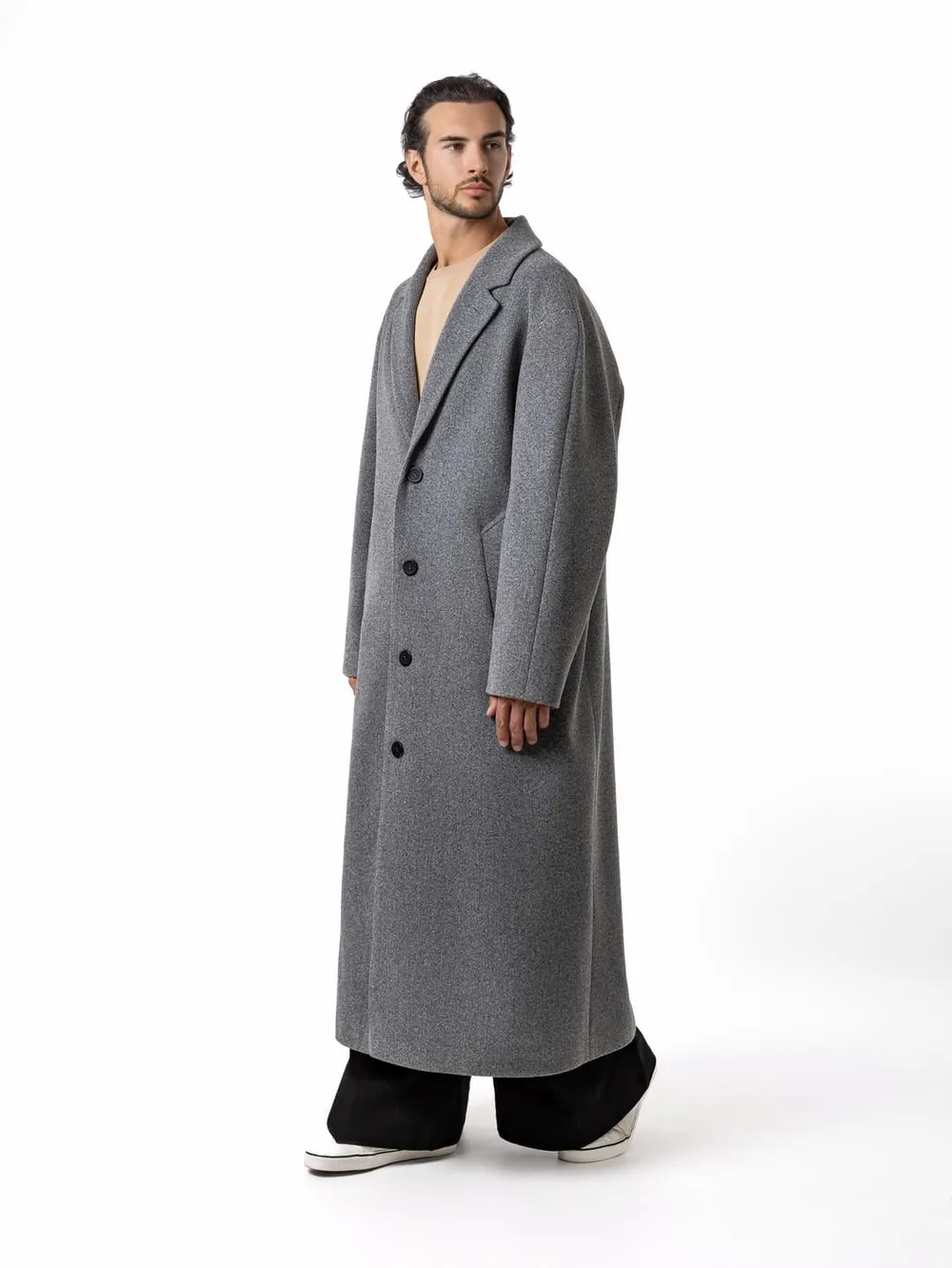 Пальто Dryg однобортное утепленное светло-серое