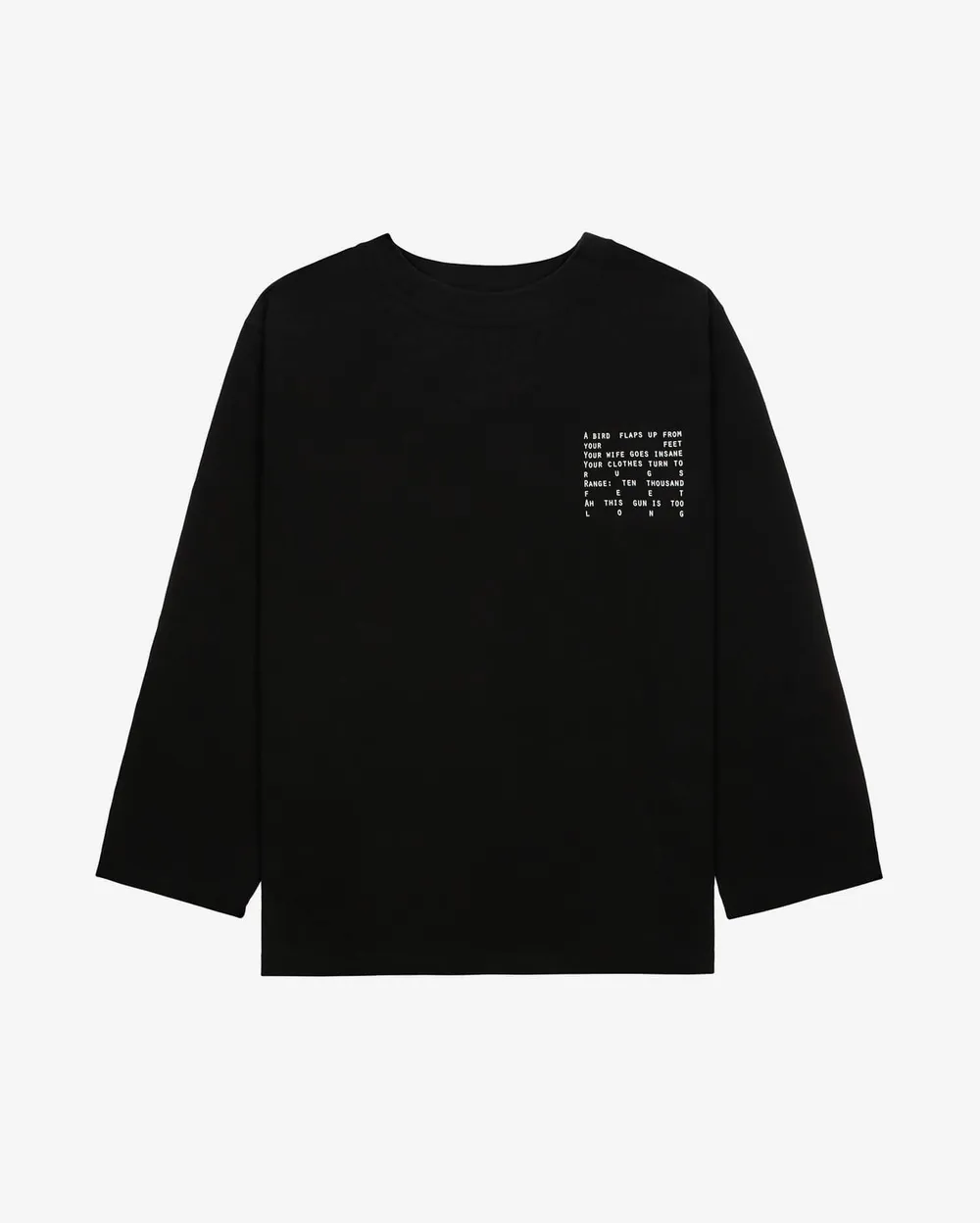 Лонгслив из плотного хлопка с двумя цифровыми принтами. Расширенный и удлиненный силуэт при классической посадке «по плечам», широкая резинка и закрытие по горловине.