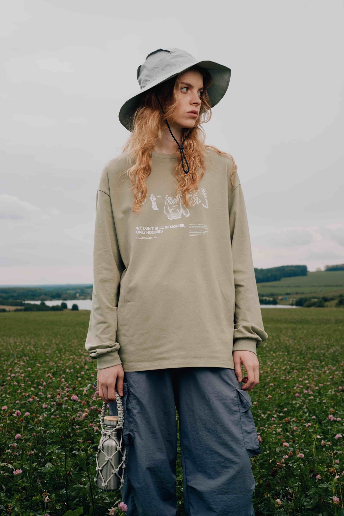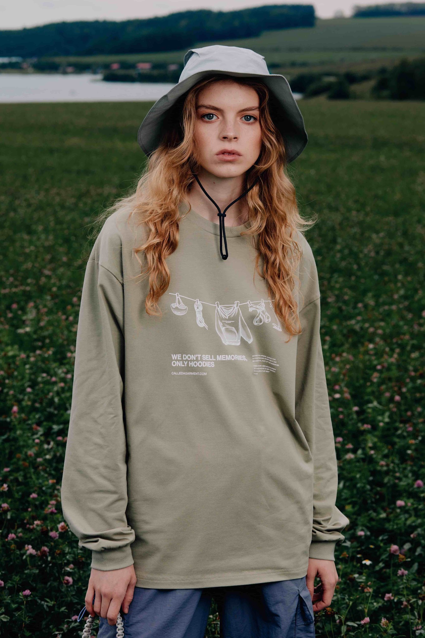 Данный принт - первый из серии и нанесён на лонгслив, который порадует вас своим приятным пыльно-зеленым оттенком. Давай создавать историю вместе с CG!