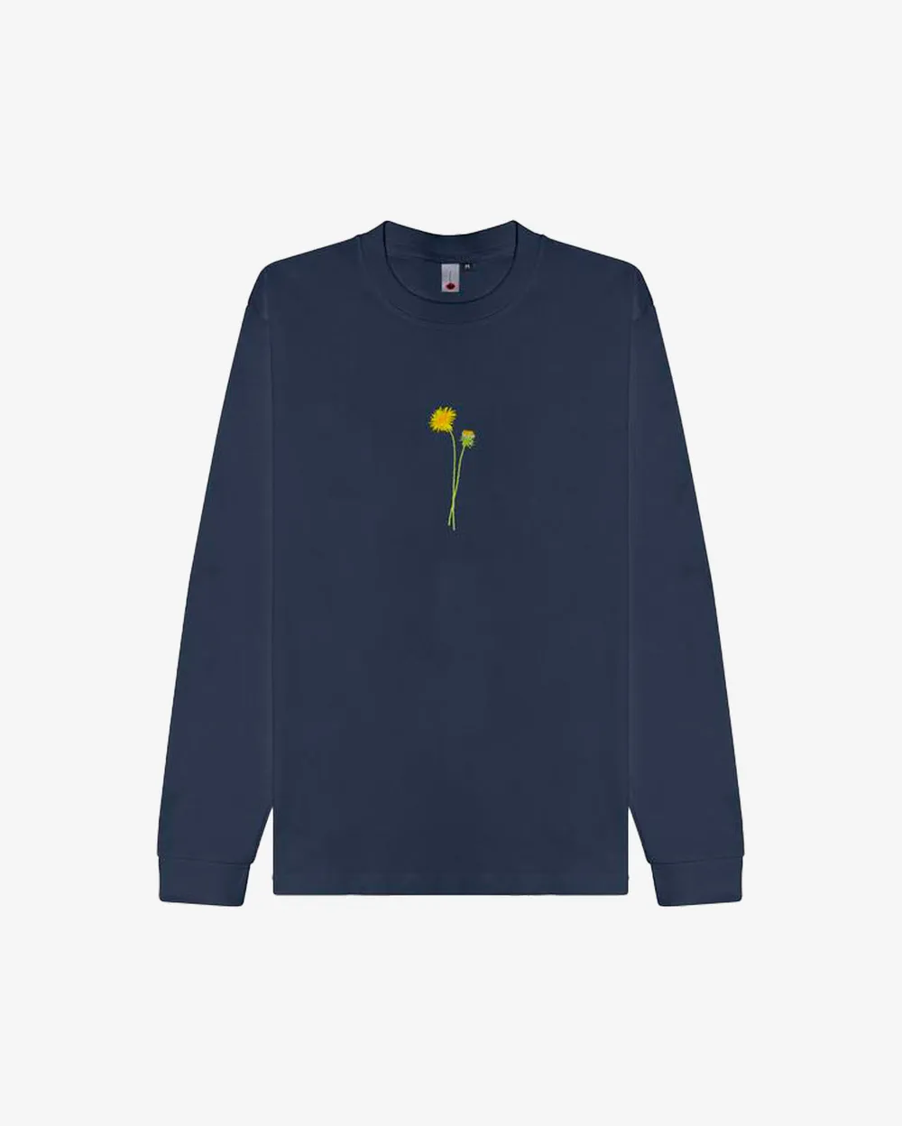Лонгслив свободного кроя с круглым вырезом, горловина обработана окантовкой в рубчик, приспущенная линия плеч, втачной рукав, вышивка.